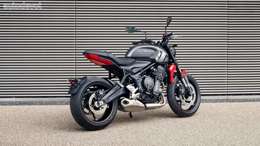 As the name suggests, the Trident 660 is powered by a 660 cc in-line 3-cylinder liquid-cooled engine that develops a maximum of 60 kW (81 metric hp) at 10,250 rpm and 64 Nm (47 lb-ft) of torque at 6,250 rpm. The engine is paired with a 6-speed gearbox with slip & assist clutch. Triumph claims that 90% of peak torque is available across most of the rev range.