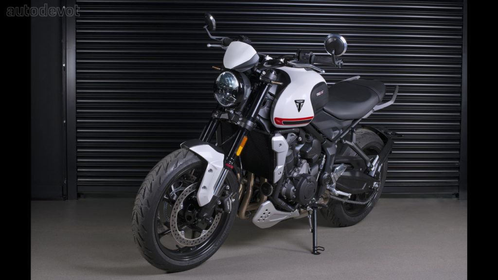 Triumph will offer a bunch of other accessories too, such as the Fly Screen, round mirrors, Tank Bag, Tail Pack, Belly Pan and so on. The motorcycle will be available in four color combinations: Silver Ice & Diablo Red; Matt Jet Black & Matt Silver Ice; Crystal White (with Diablo Red lines and Jet Black decals); and Sapphire Black (with Diablo Red and Aluminium Silver decals).