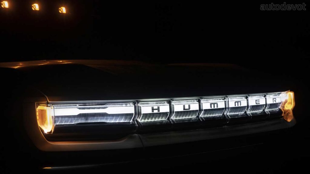 As for the styling, I think the designers have tried their best to come up with something that looks like an evolved version of the original Hummer. The front fascia with its grille design is fairly recognizable as a new Hummer and so is the side profile with flared, squarish wheel arches. In fact, the side profile might remind you of the Lamborghini LM002. Also, notice the ‘H’ shape in the headlight housing and also a vertical H-shaped taillight signature. The headlights perform welcome, leaving and charging animations.