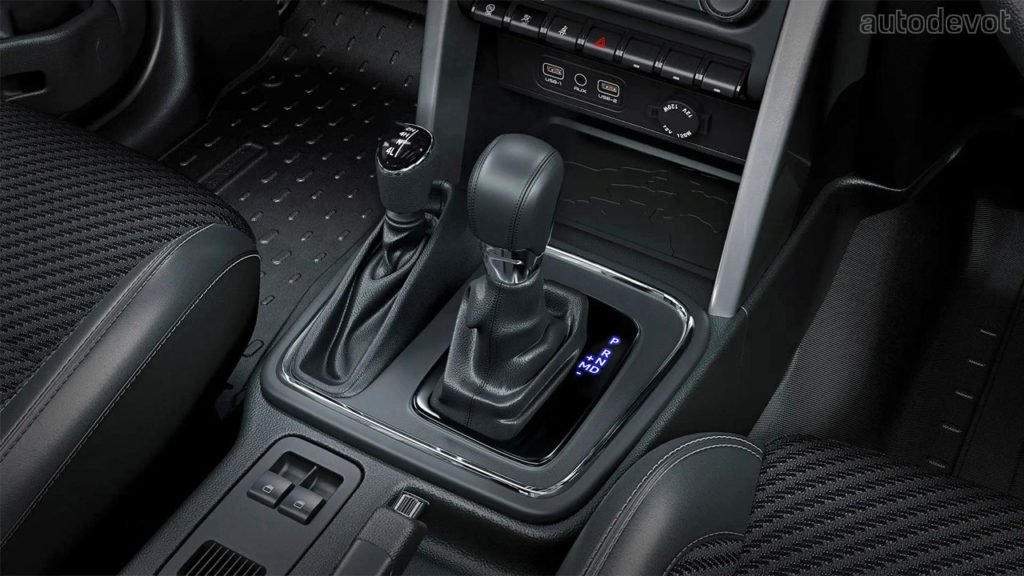 The diesel-powered Thar packs a 2.2-litre (2,184 cc) 4-cylinder turbocharged mHawk 130 engine that develops 132 hp (97 kW) at 3,750 rpm and 300 Nm (221 lb-ft) of torque between 1,600-2,800 rpm. The petrol Thar packs a 2.0-litre (1,997 cc) 4-cylinder turbocharged mStallion 150 engine that pumps out 152 hp (112 kW) at 5,000 rpm and 300 Nm (221 lb-ft) of torque between 1,250-3,000 rpm. Depending on the trim, gearbox will either be a 6-speed manual or a 6-speed automatic. 4WD with a manual transfer case is standard across all trims. Download the brochure here.