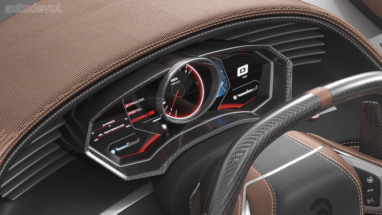 As with its Coupe sibling, the Spyder too is powered by a naturally aspirated V8 powerplant (rumoured to be a 6.2L) that revs up to 8,800 rpm. An Ares Design-tuned ECU and a bespoke exhaust system are claimed to deliver 522 kW (710 metric hp). Ares also claims a 0-100 km/h (62 mph) sprint time of 2.7 seconds. An 8-speed DCT drives the rear wheels.