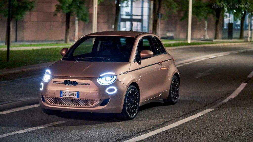 The remaining trims (including la Prima) get a 87 kW (118 hp) e-motor with a 42 kWh battery pack, offering up to 320 km (198 mi) range in the WLTP cycle, or 460 km (285 mi) in the urban cycle alone. The battery pack here is capable of up to 85 kW DC fast-charging. Read more about the New 500 here.