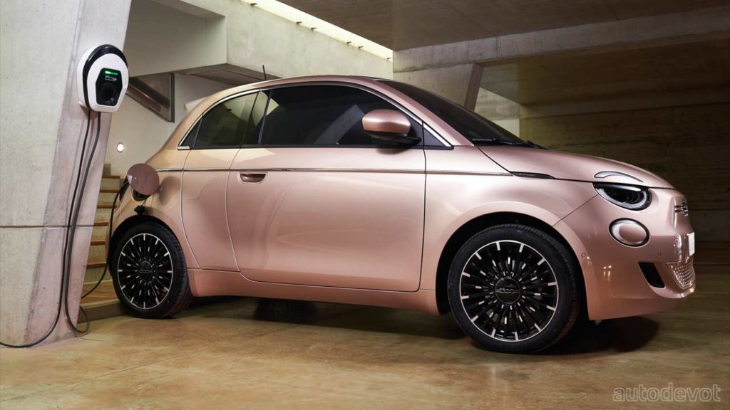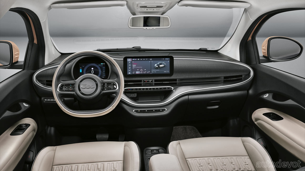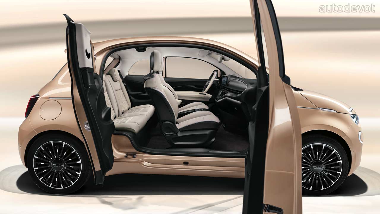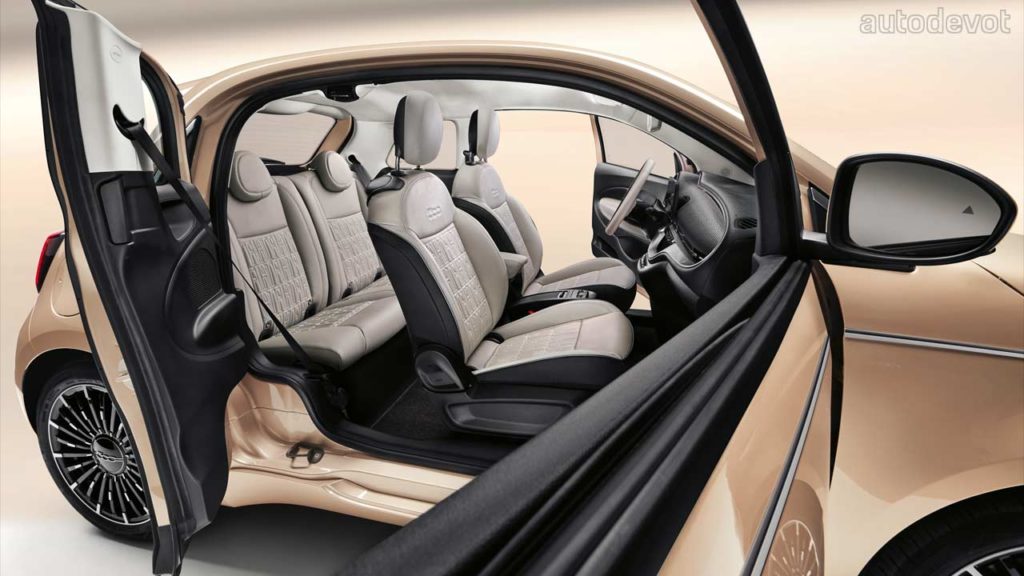 In addition to the New 500 3+1 la Prima, now there are three more trims on offer: Action, Passion and Icon. The Action’s power output is limited to 70 kW (95 hp) with a 23.8 kWh battery pack, offering a range of over 180 km (111+ mi) in the WLTP cycle, or over 240 km (149 mi) only in the city. The Action’s battery pack is capable of 50 kW DC fast-charging.