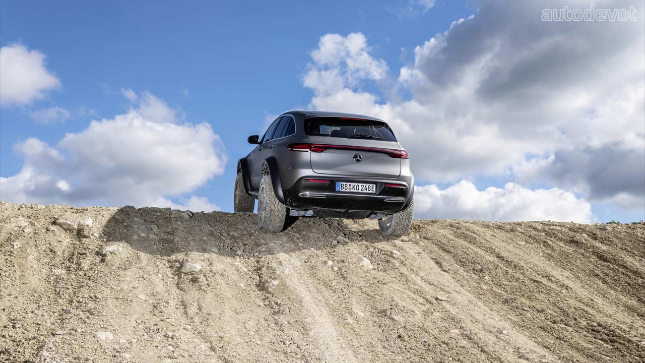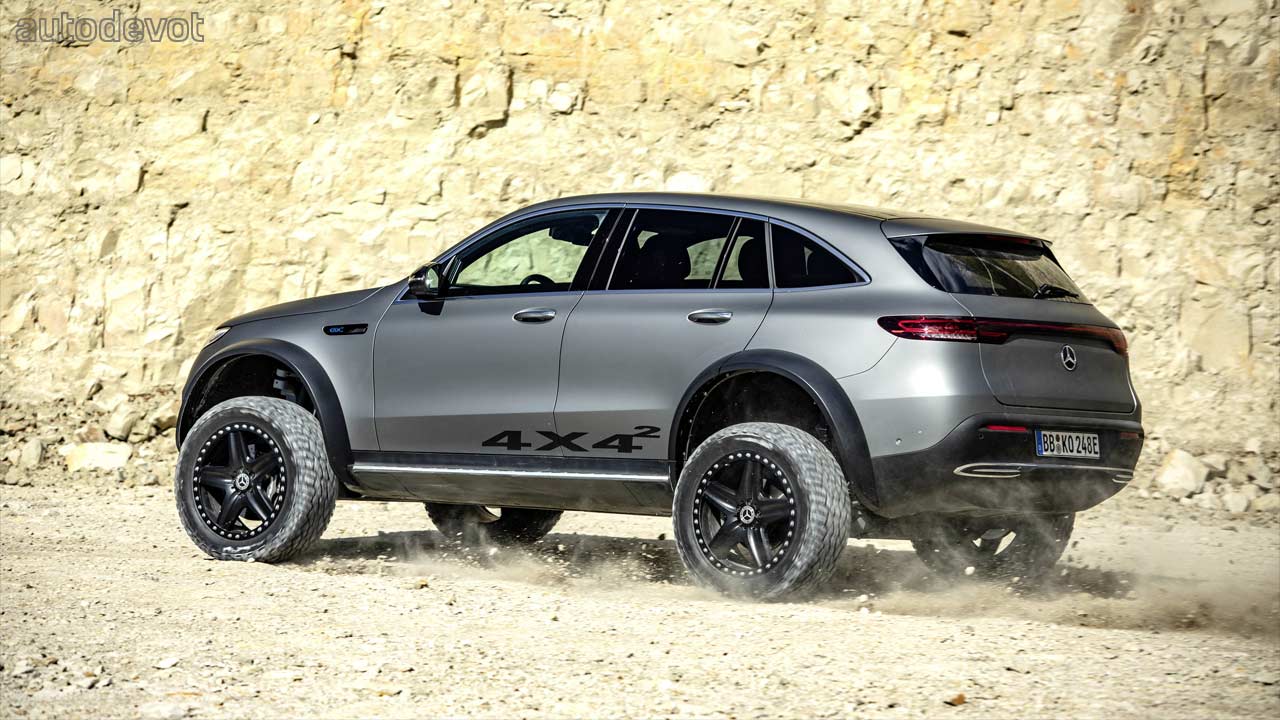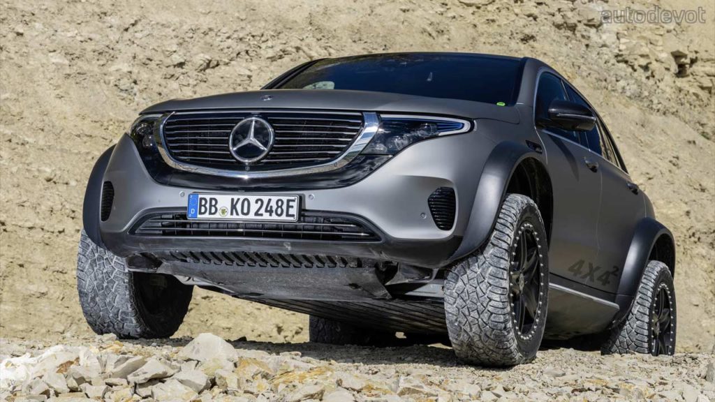 No power upgrades for the EQC 4×4², not that it requires any. The standard EQC already boasts 408 hp (300 kW) and 765 Nm (564 lb-ft) of torque, with juice supplied by an 80 kWh lithium-ion battery pack. However, this rock crawler might not offer the same official 450+ km (280+ mi) WLTP range as the standard one.