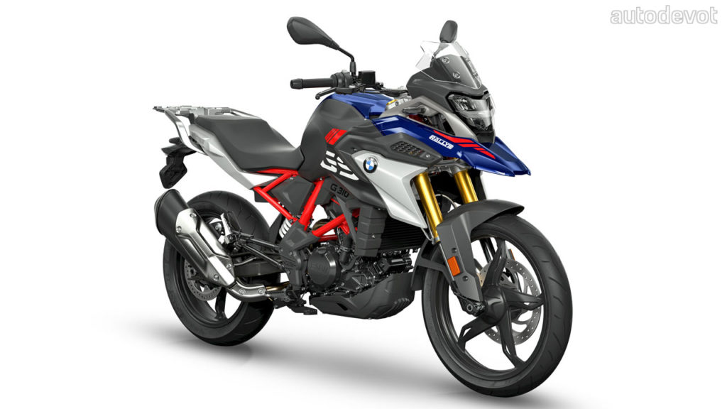 The updated motorcycles feature new full-LED headlight with a running light in the middle, which makes them look a lot more contemporary than the outgoing ones. The G 310 R features a ‘Style Sport’ color scheme in which a special Limestone metallic color combines with red rims and a red frame for a bold, sporty appearance. The G 310 GS on the other side features a ‘Style Rallye’ theme, where the red frame combines with Kyanite Blue metallic color.