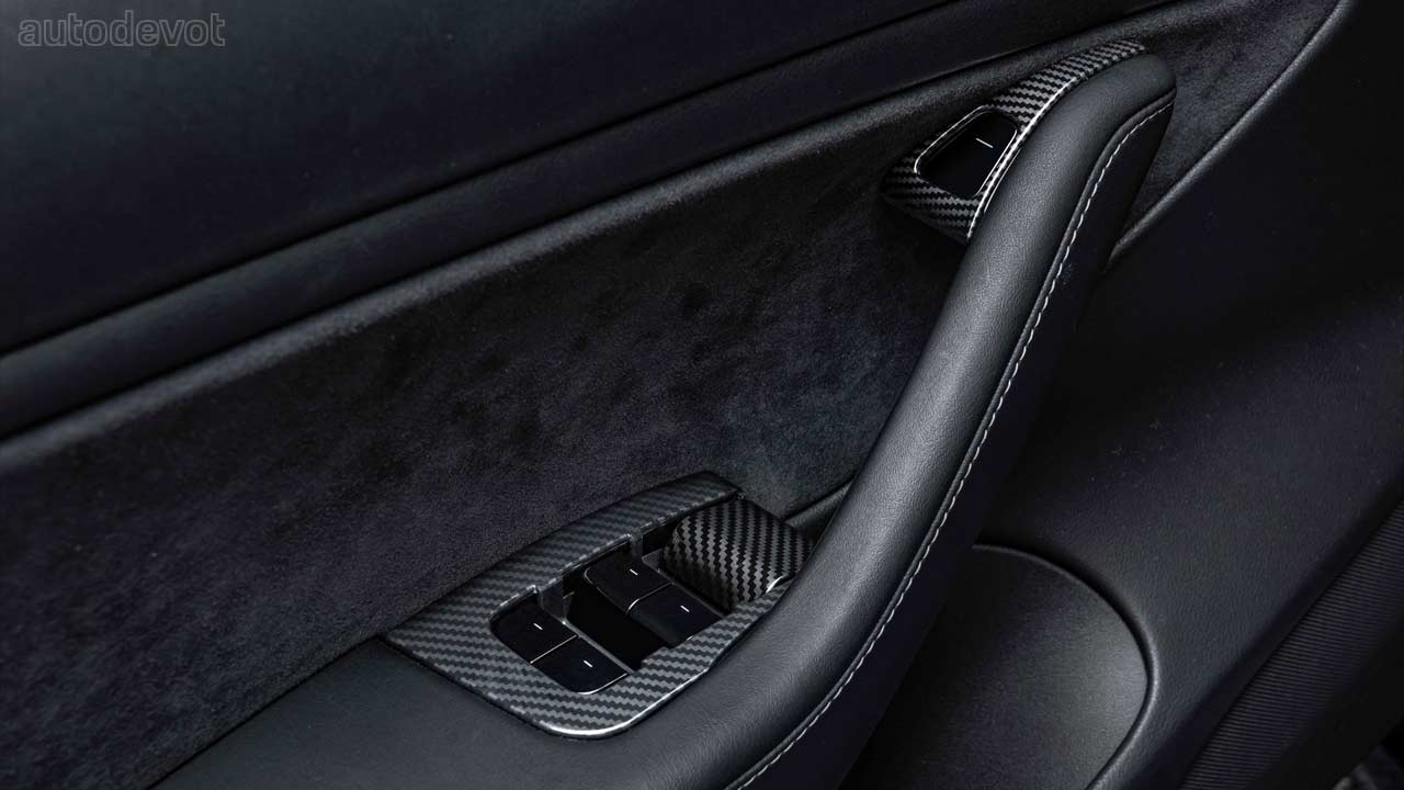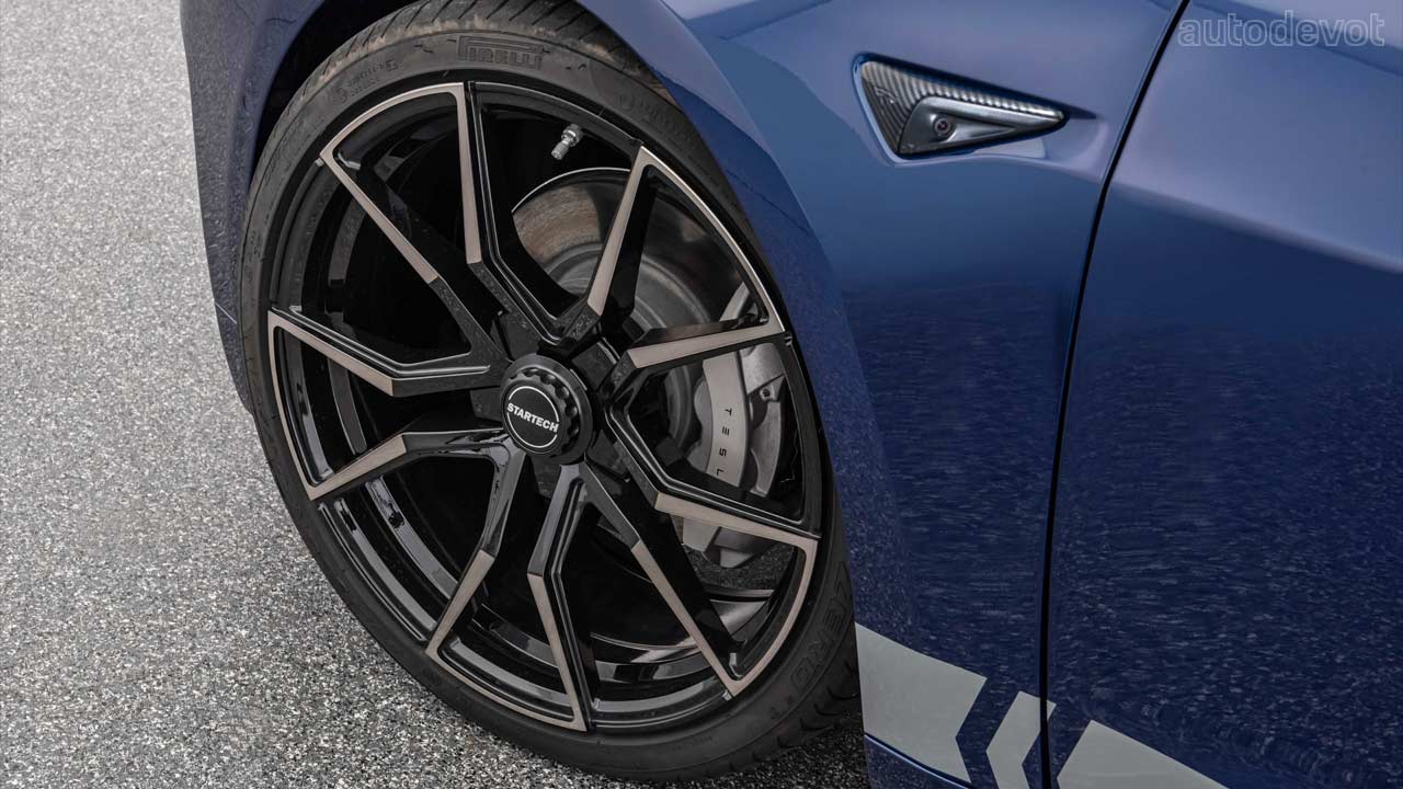 The most noticeable one is the revised front bumper which kinda lends it a Porsche-ish look. Other elements include aerodynamic fins on the side, a three-piece fixed wing at the rear, a new rear bumper with air curtains, carbon-fibre-like mirror caps, and 20-inch Monostar M alloy wheels wrapped with high-performance mixed-size tires.
