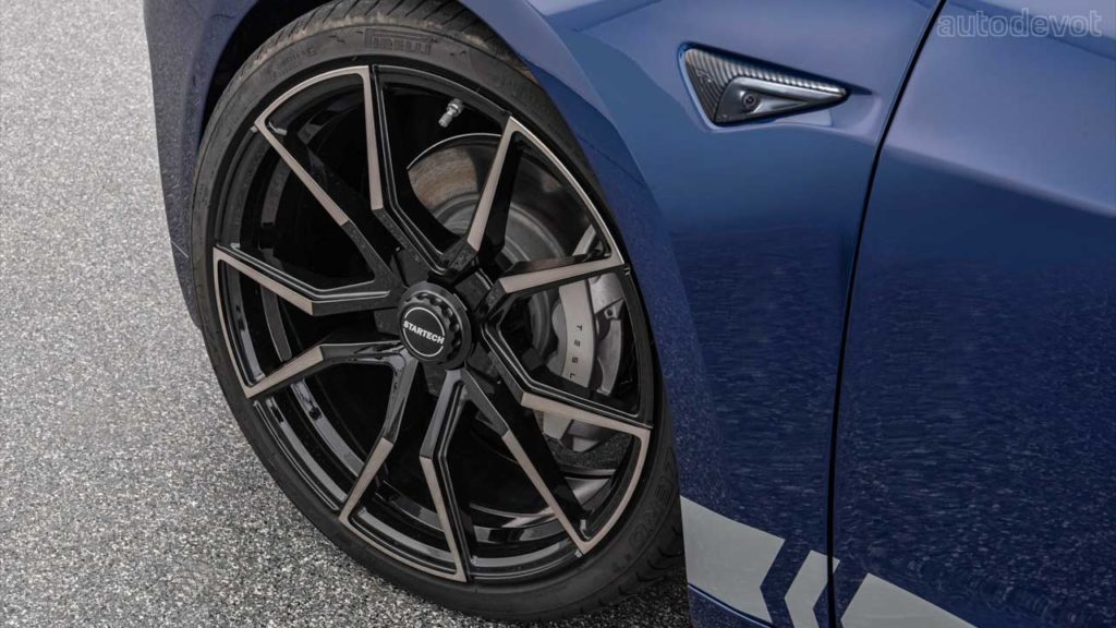 Brabus has revealed an aerodynamic body kit for the Tesla Model 3 under its ‘Startech’ sub-brand. Brabus’ body kit makes the car look more sportier compared to Novitec’s rendition of the American EV.