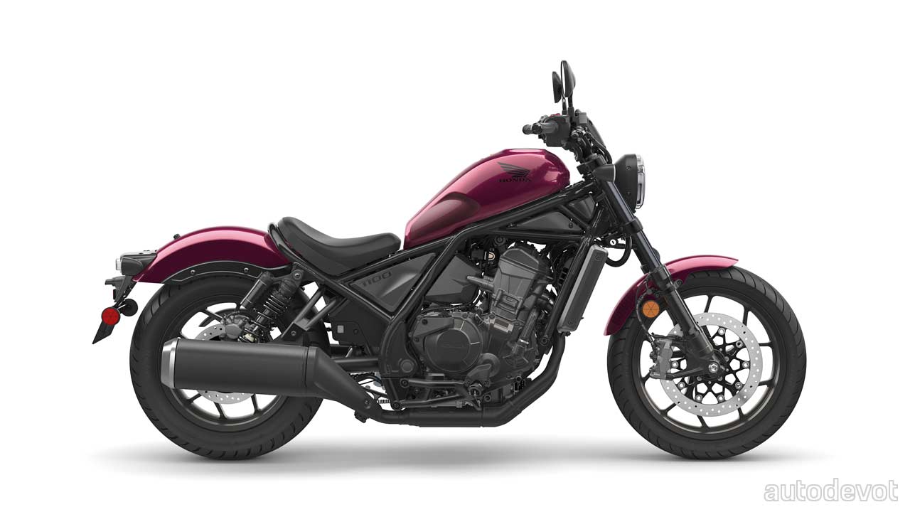 At launch, the Rebel 1100 will be available with Metallic Black or Bordeaux Red Metallic finishes.