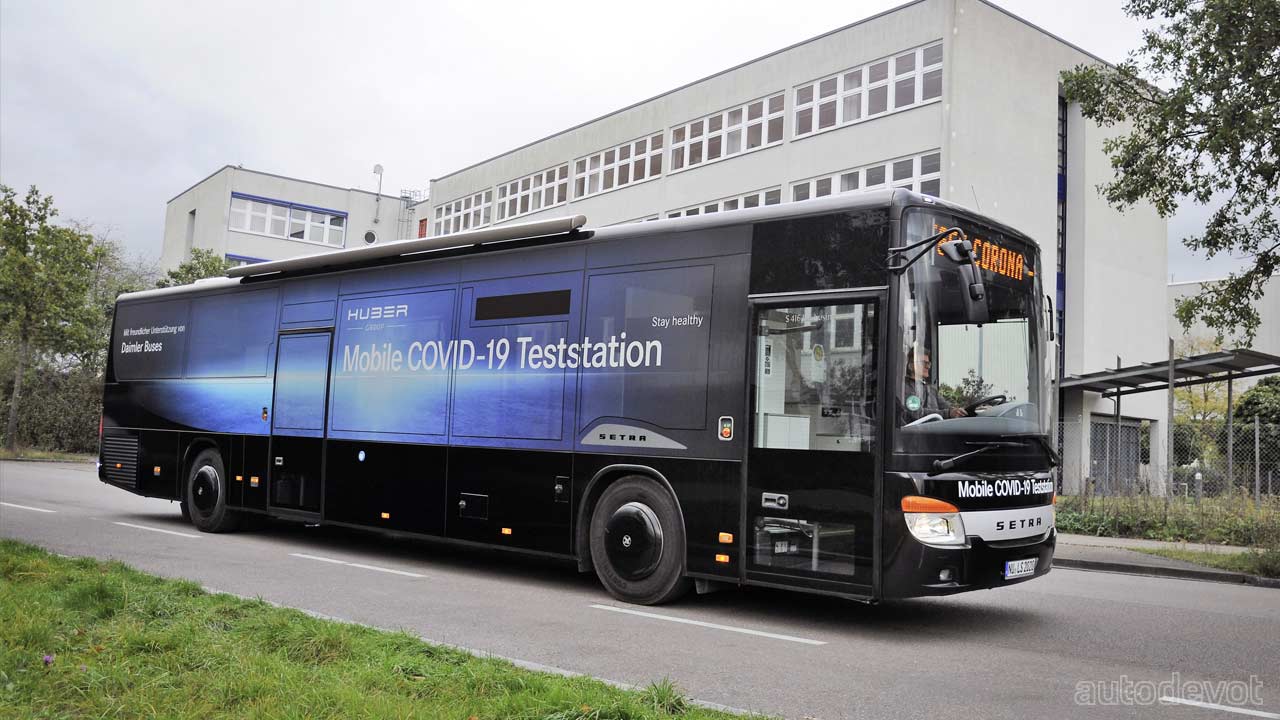 Daimler is supporting the fight against the COVID-19 pandemic in Germany with a special Setra inter-city bus modified as a mobile testing station. It’ll be used by Huber Group for testing at schools, residential layouts and companies.