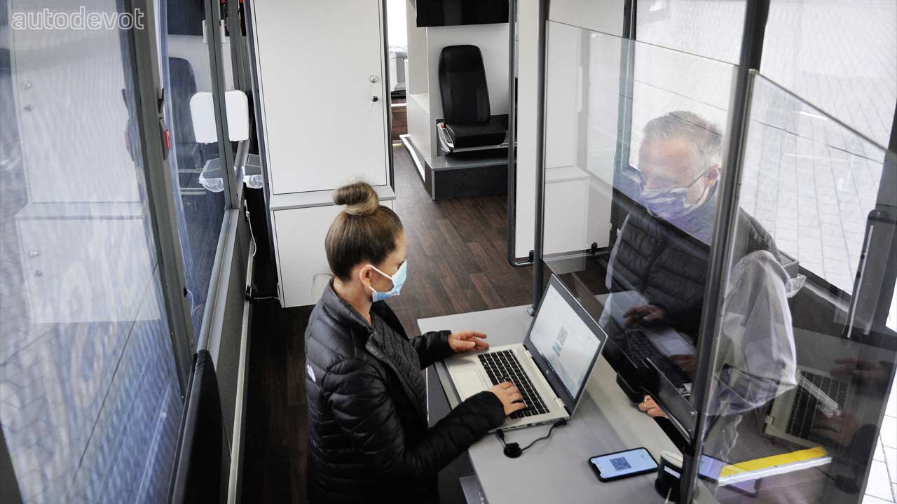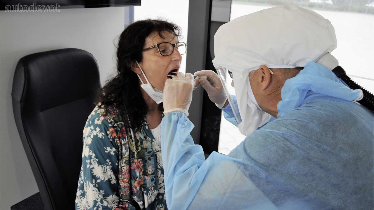 Those who need to get tested will enter the bus at the rear entrance where the personal data is verified, post which, they’ll move on to the front section of the bus to carry out the mouth and throat swab tests. The bus is also equipped with an awning, just in case if it rains, and a stationary heater as well.