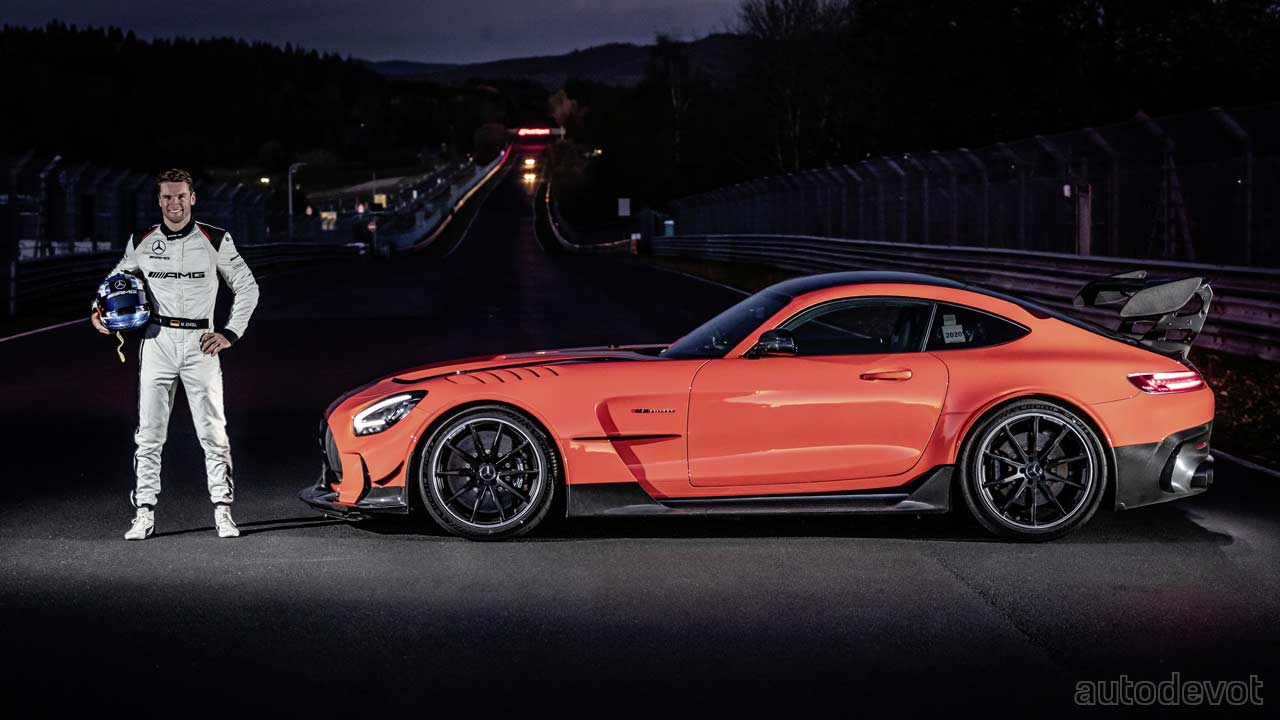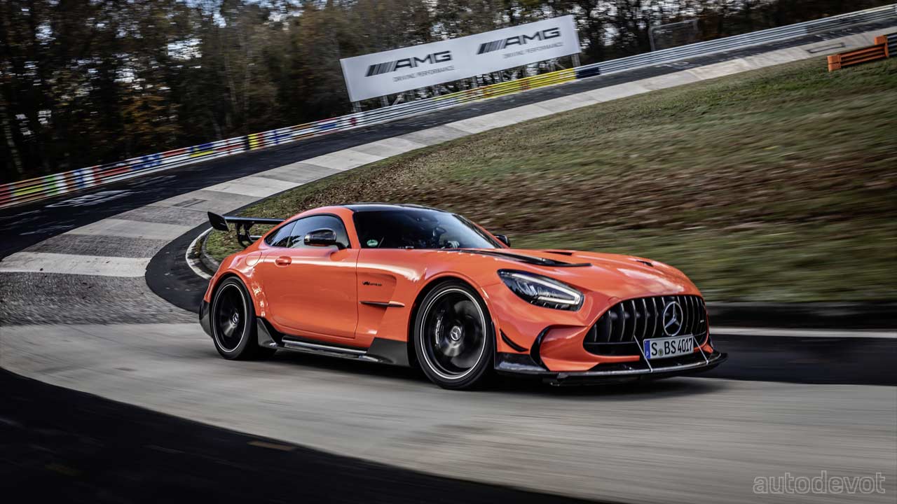 The Mercedes-AMG GT Black Series has lapped the 20.6 km (12.14 mi) of the Nürburgring-Nordschleife (excluding section T13) in 6:43.616 minutes, beating the Aventador SVJ‘s 2018 record by just 1.36 seconds. When included the T13, which is a distance of 20.8 km (12.16 mi), the time is 6:48.047 minutes. Behind the wheel was German pro racer Maro Engel.