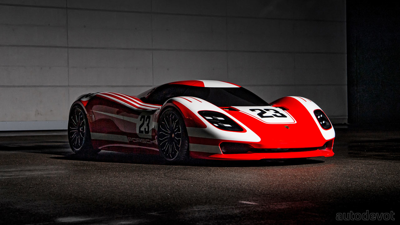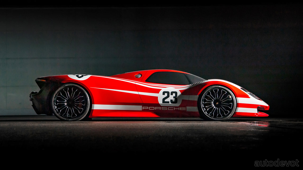 The first one is the 917 Living Legend. Created in 2013, it remains as a 1:1 scale clay model. Its styling and the red & white livery was inspired by the 917 race car that secured the first overall victory for Porsche at Le Mans in the summer of 1970; the car was piloted by Hans Herrmann and Richard Attwood. The 918 Spyder served as the technical inspiration.