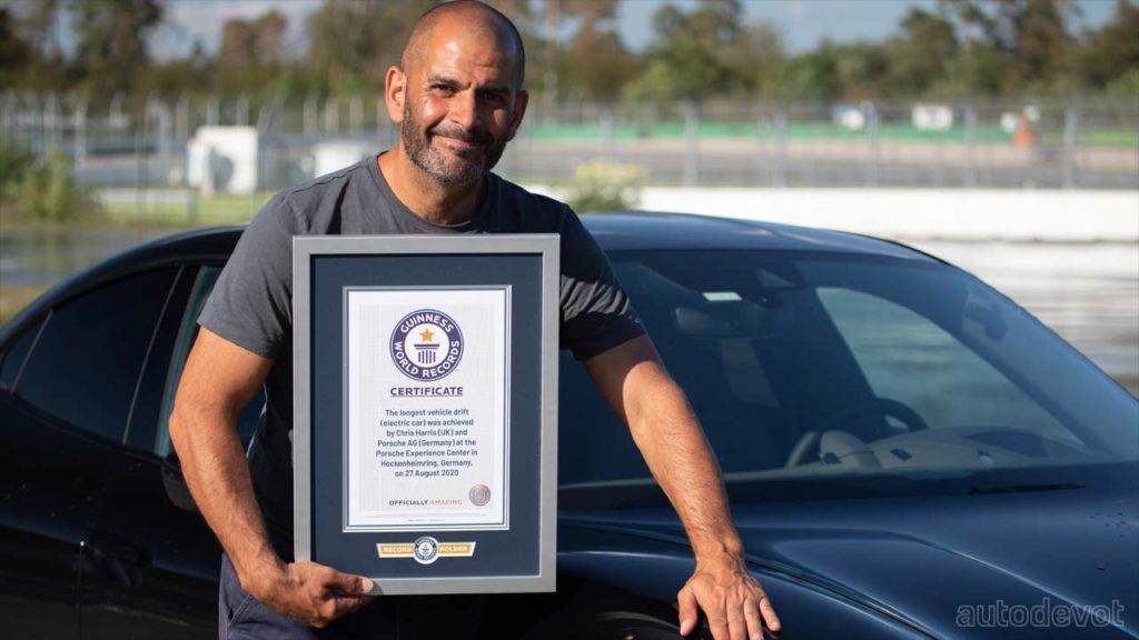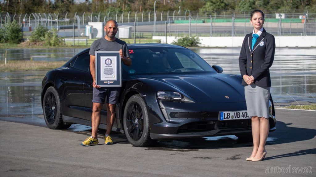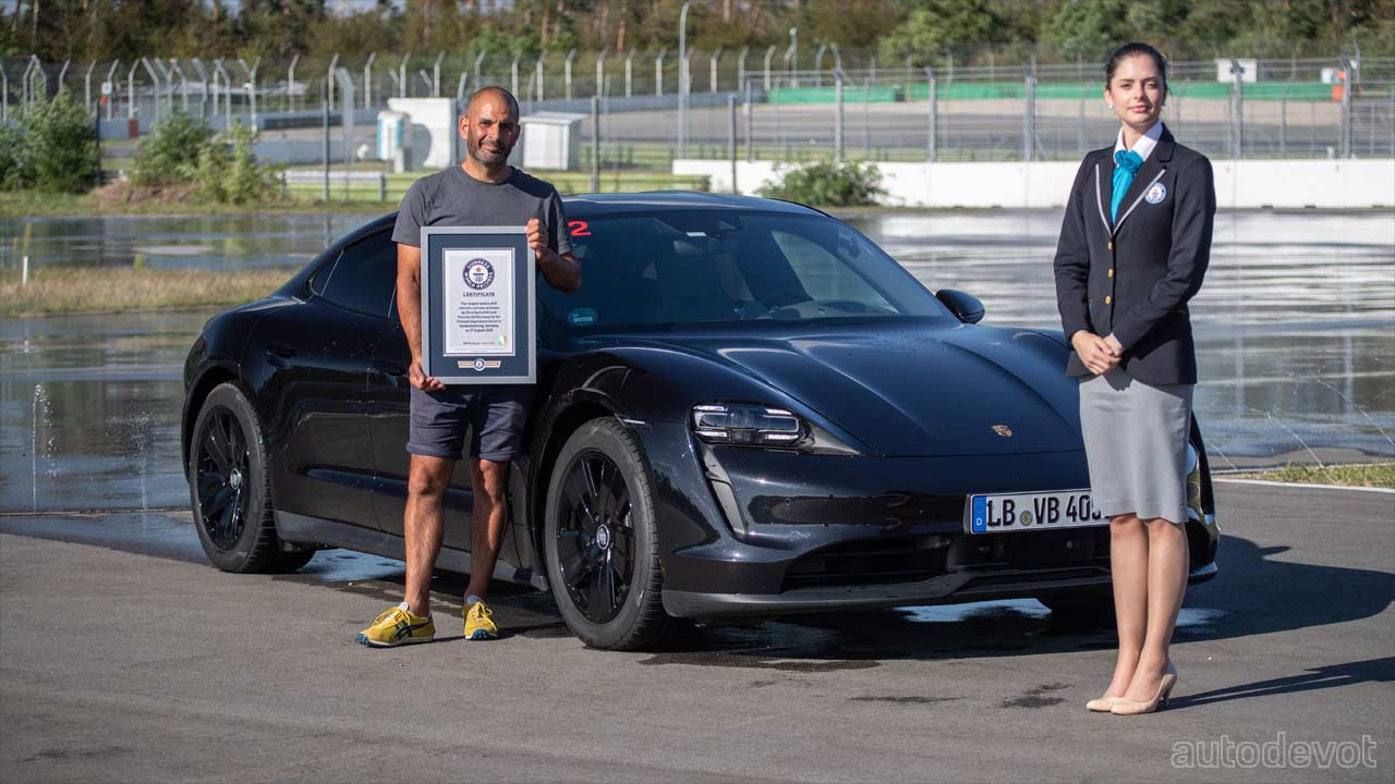 After his attempt, Porsche instructor Dennis Retera managed to do a whopping 210 laps at an average speed of 46 km/h (28.5 mph) for about 55 minutes covering a distance equal to 42 km (26 mi). Retera secured the new world record for the longest continuous drift in an electric car.