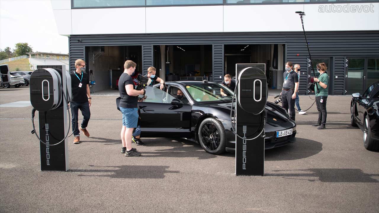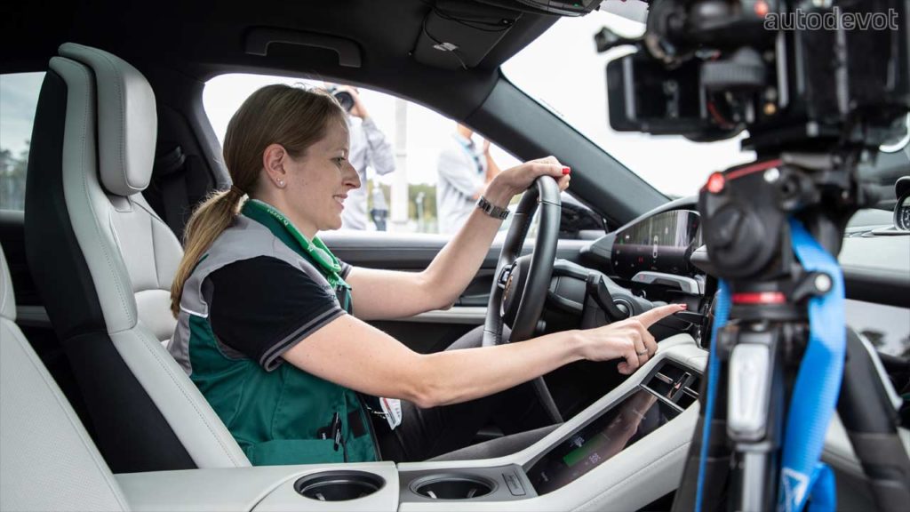 The record attempt took place under the supervision of Guinness World Records official record judge Joanne Brent (masked one on the left image). Also present at the event was an expert from DEKRA — Denise Ritzmann, whose job was to verify the standard and roadworthy condition of the RWD Taycan. Apparently, Ritzmann was the European drifting champion between 2018-2019.