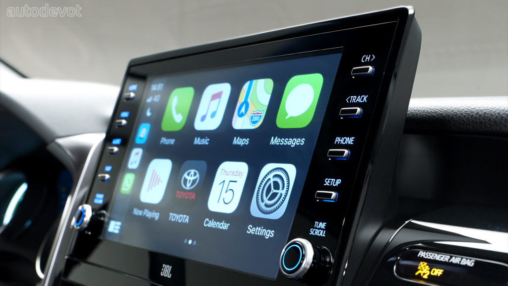In the updated cabin, the central air vents and the touchscreen have swapped their places, apparently for better visibility and ease of use of the latter. The 9-inch touchscreen is supported with mechanical buttons and dials as well, which is a welcome feature. The touchscreen is compatible with Android Auto and Apple CarPlay.