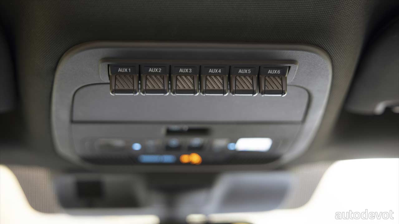 The cabin features Active Orange highlights and of course, Tremor branding. Functional off-road hardware extends into the cabin, with a 6-position auxiliary power switch pack mounted in the overhead console, enabling owners to add off-road winches and air compressors. A variety of off-road lighting options can be dealer-installed on all models.