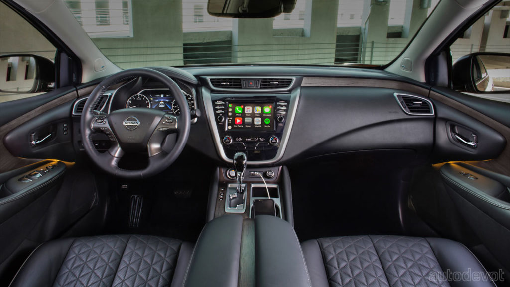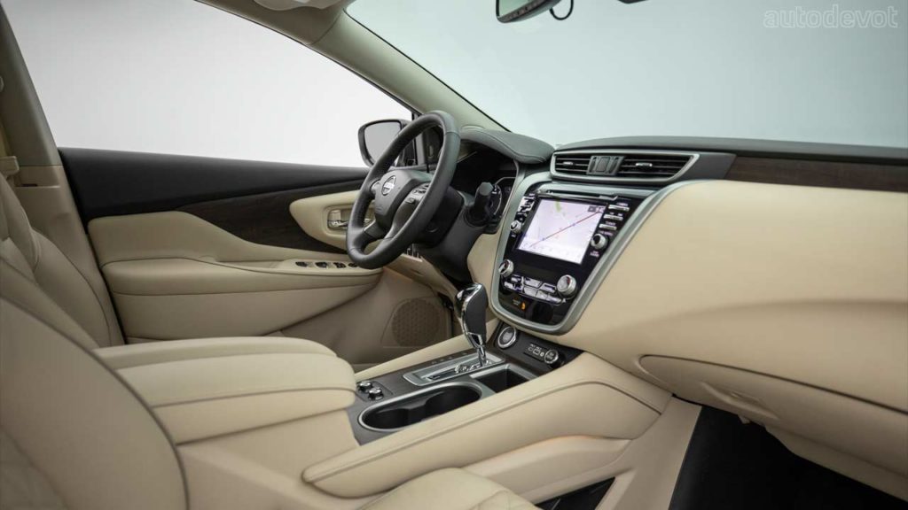 The Murano in the U.S. market is powered by a 3.5-litre V6 petrol engine that pumps out 194 kW (264 metric hp) and 325 Nm (240 lb-ft) of torque. The engine is paired with a CVT.