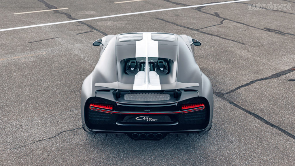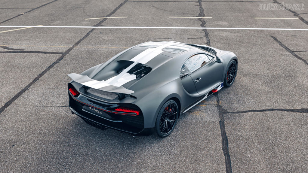 As the name suggests, the Les Légendes du Ciel gets the same numbers as the Chiron Sport, which are 1,103 kW (1,500 metric hp) and 1,600 Nm (1,180 lb-ft) of torque. Its top speed is electronically limited to 420 km/h (261 mph).