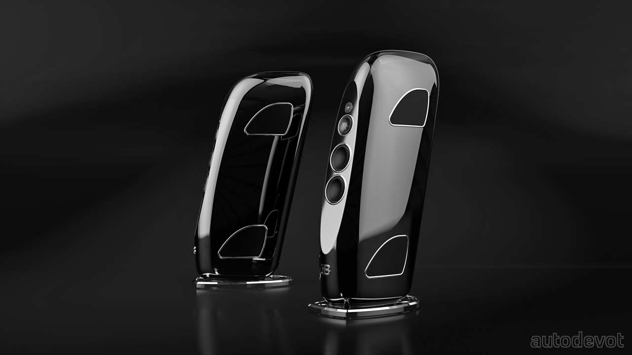 I’m not completely sure of the speakers having the Bugatti design language, but they do look like a keyfob from certain angles. The front has a stainless steel Bugatti logo, while at the rear, there’s a plaque with ‘Tidal for Bugatti’ branding. The speakers can also be customized with materials including carbon fibre, leather, aluminum and any other precious metals.