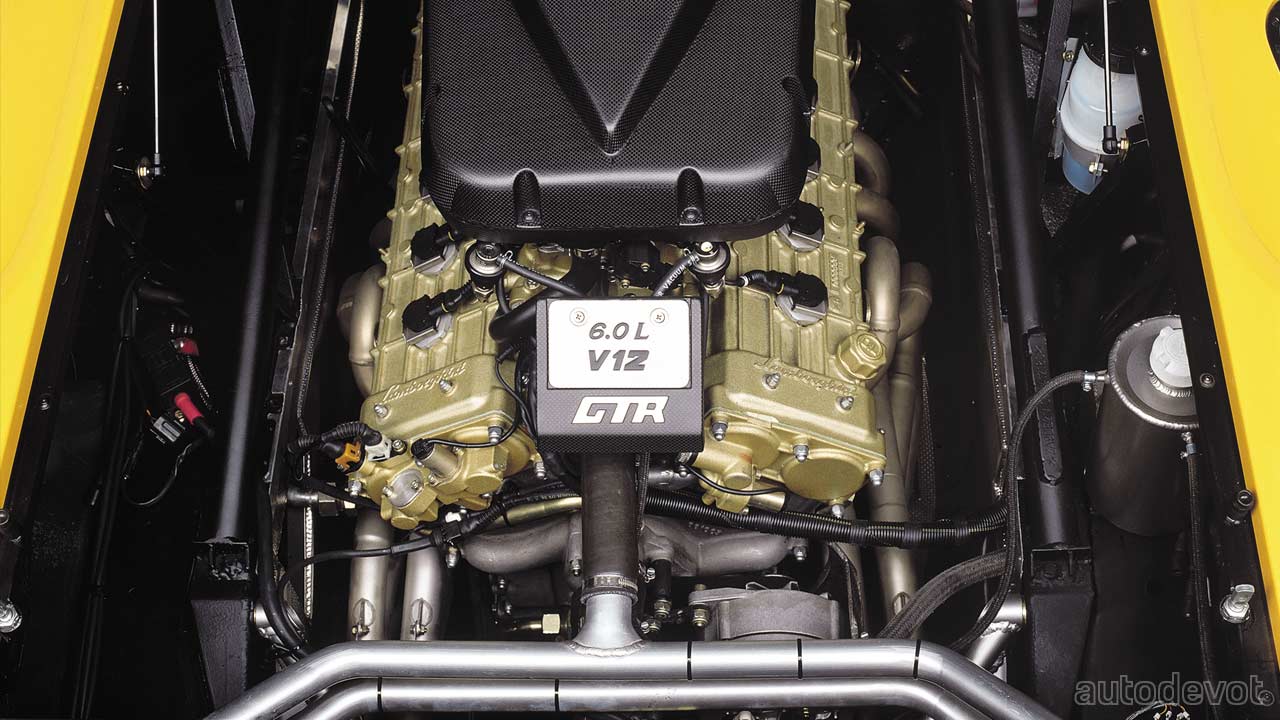 Both the GT and the GTR had a 6.0L V12 powerplant, which in the street-legal version offered 429 kW (583 metric hp) and in the track version, offered 447 kW (608 metric hp). Lamborghini produced 83 units of the road version and 32 units of the track version for a year.