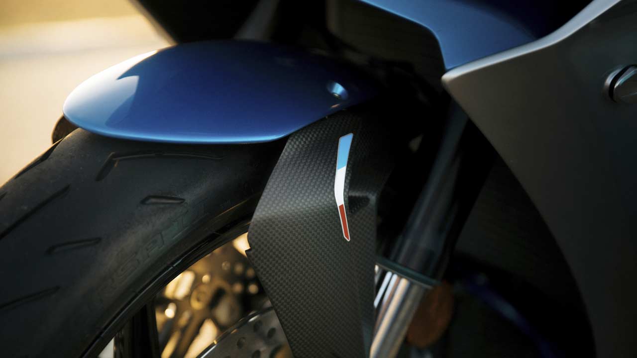 The limited edition motorcycle is finished in a blue livery, the debut color of the A110. As we can see, it also features A badges and Alpine branding, and French and Italian flags on either side of the front fender. The Alcantara seat features blue contrast stitching. Rounding off the visual treatment are CNC-machined black rims.
