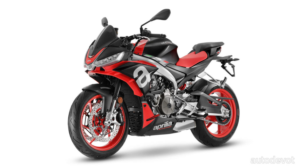 Features list includes LED headlights with running light signatures; color TFT display; adjustable Kayaba suspension; and electronics such as traction control, anti-wheelie control, and cruise control. The motorcycle also offers five Riding Modes (three dedicated to road and two for the track).