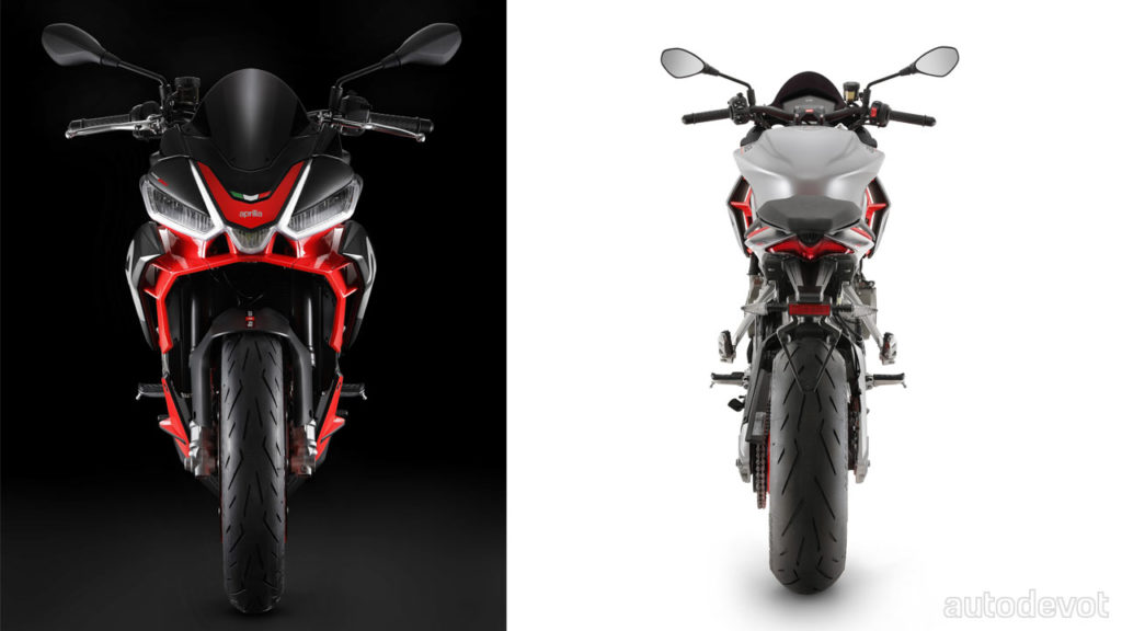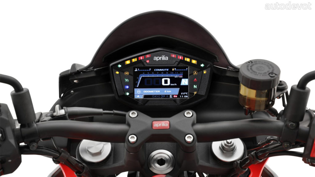 It doesn’t go full naked though; it still retains many of its clothes, I mean the panels, but shows a bit more compared to the RS 660. The handlebar is higher and the visor is slightly smaller and a bit upright as well. Also, the mirrors are mounted on the handlebar as opposed to fairing-mounted mirrors in the RS. Other than that, the rest of the motorcycle looks pretty much the same as the RS. There are three paint schemes to choose from: Concept Black, Iridium Grey and Acid Gold.