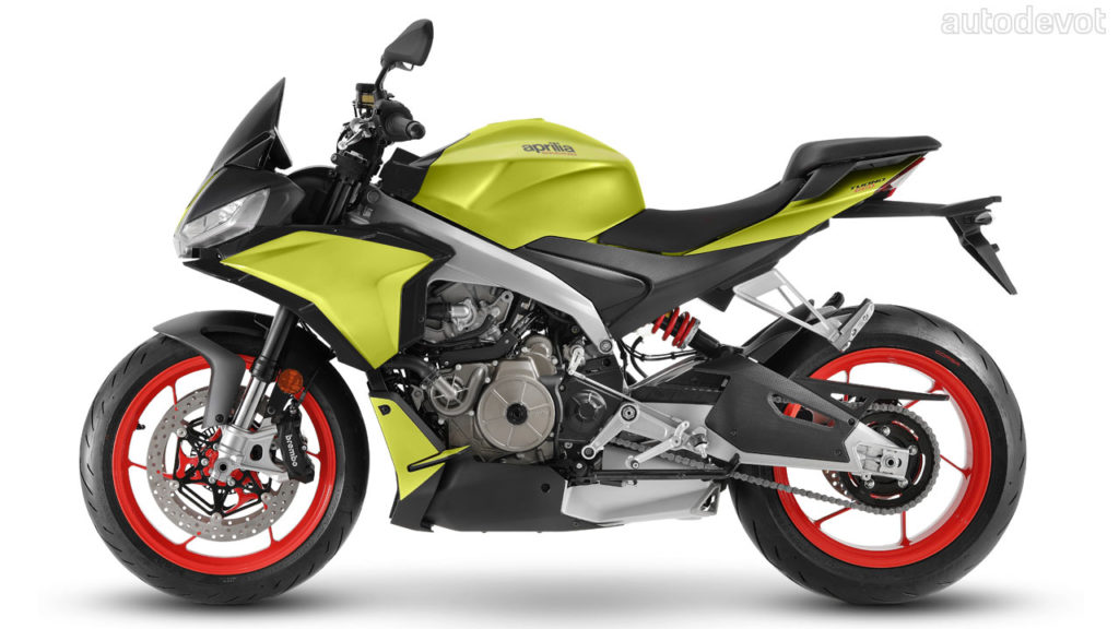 The 660 cc parallel-twin engine offers 70 kW (95 metric hp) as opposed to 73.5 kW (100 metric hp) in the RS. However, its kerb weight is the same as the RS at 183 kg (403.5 lbs). For new and younger riders, the Tuono 660 is also available in the 35 kW (47.5 metric hp) version.