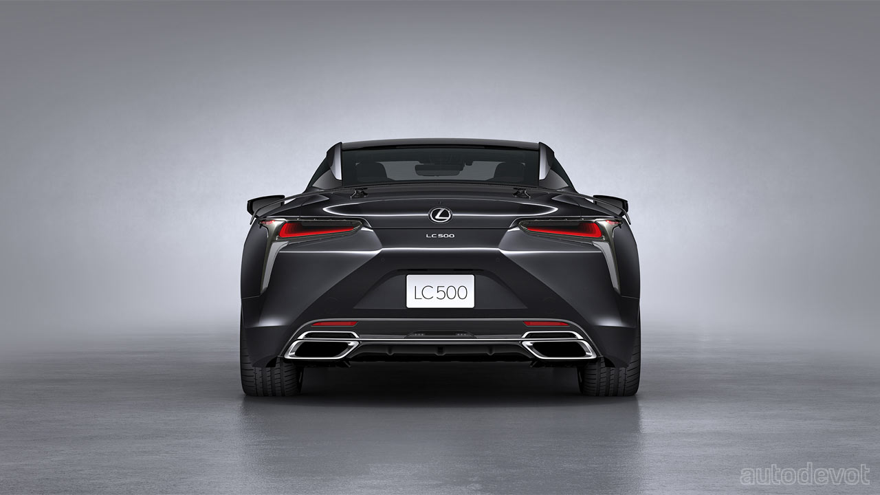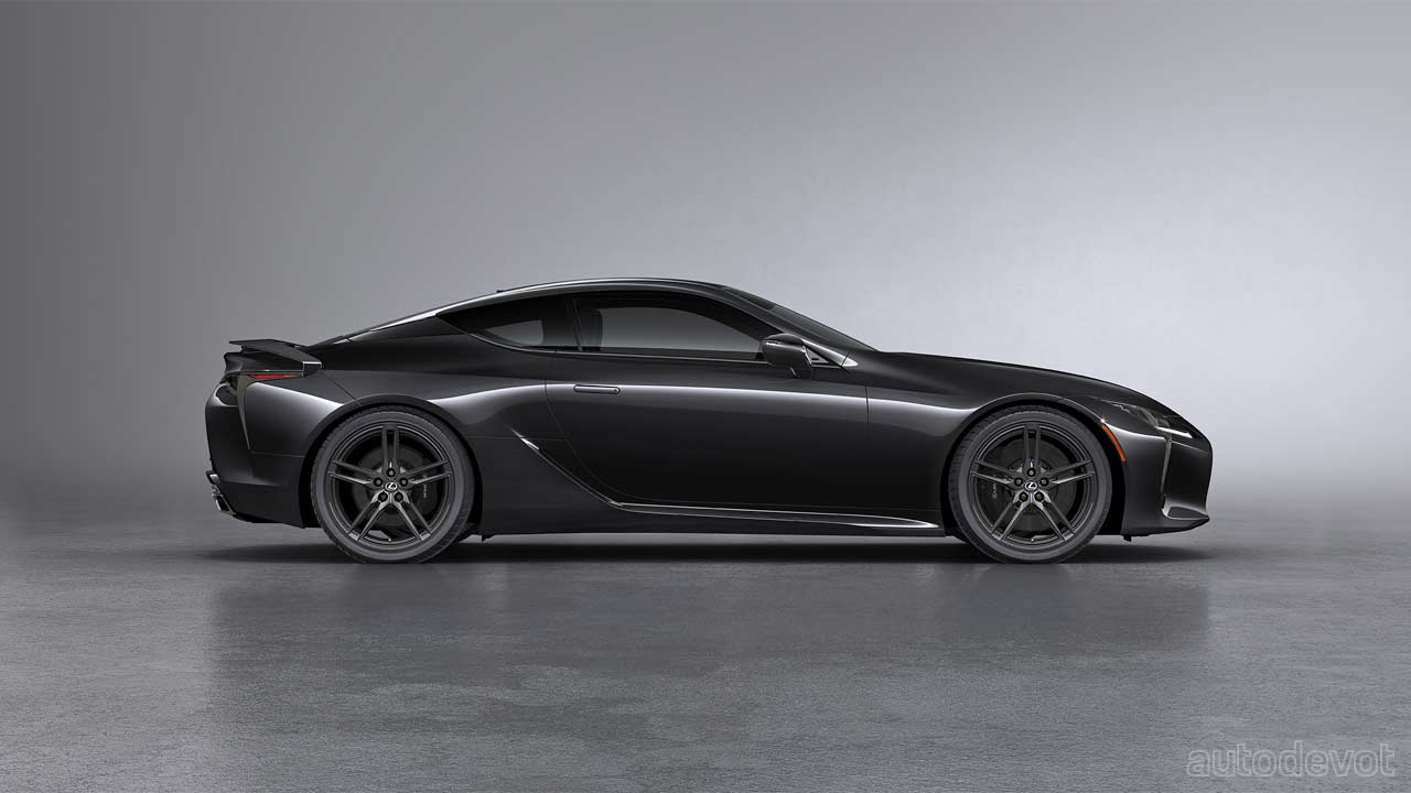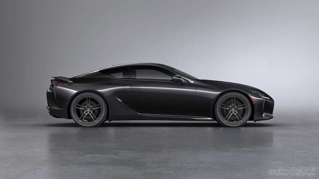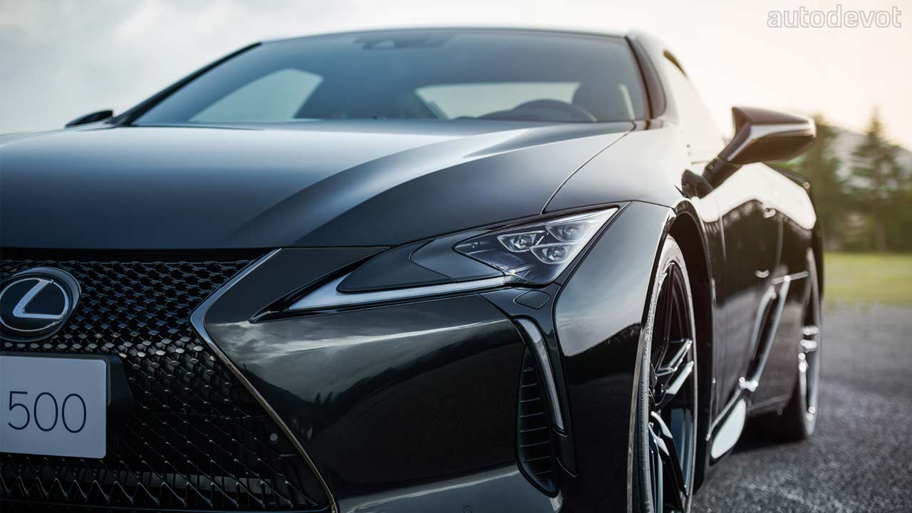 The cabin too is mostly drenched in black, with subtle Saddle Tan accents. Features include Alcantara-trimmed sport seats, standard Mark Levinson 13-speaker audio system, standard color Head-Up Display (HUD), and all the updates made on the 2021 model year LC 500, including the standard Lexus Safety System+ suite of safety and driver assistance systems.