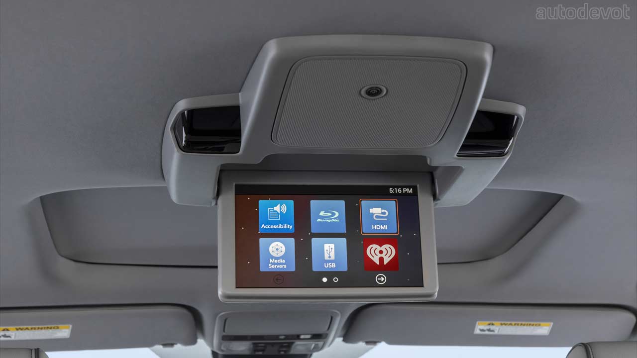 The spacious cabin offers features including a driver’s seat with 12-way power adjustment including 4-way power lumbar support; front passenger seat with 8-way power adjustment and 4-way power lumbar support; heating and ventilation for front seats; Magic Slide 2nd row seats; 60/40-split 3rd row seats; tri-zone climate control; 8-inch touchscreen; Apple CarPlay & Android Auto connectivity; Satellite Navigation; 10.2-inch Rear Entertainment System; Wi-Fi Hotspot; 11-speaker audio system; USB charging ports; and a wireless charging pad.