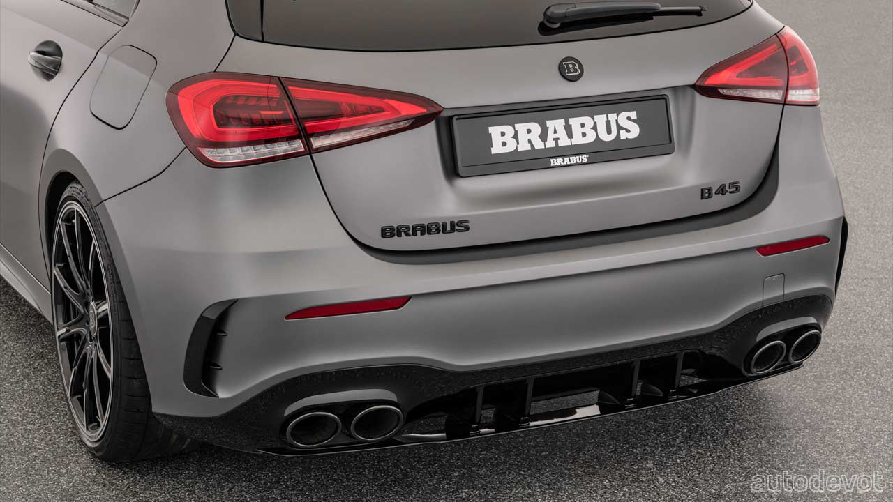 Besides a special map for the ECU, there’s a Brabus PowerXtra CPC auxiliary control unit and BoostXtra adapter, which are claimed to enable the engine to produce a sporty blow-off noise like a racecar. The car also gets a special duct for the air box. The engine develops 331 kW (450 hp) and 550 Nm (406 lb-ft) of torque, which is 29 hp and 50 Nm more compared to the stock A 45 S. The tuned hot hatch is claimed to sprint from 0-100 km/h (62 mph) in 3.7 seconds and on to a (limited) top speed of 270 km/h (168 mph).