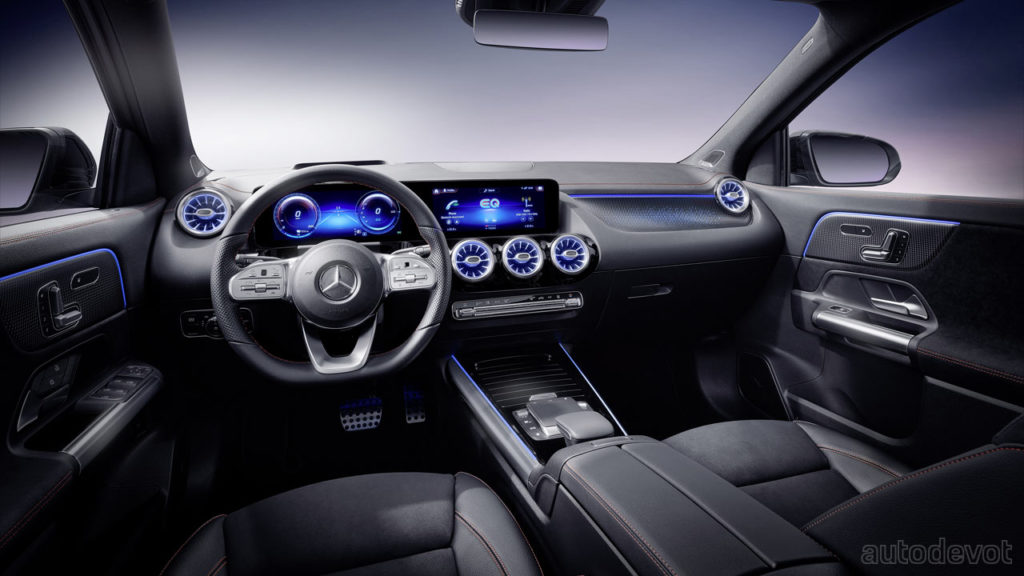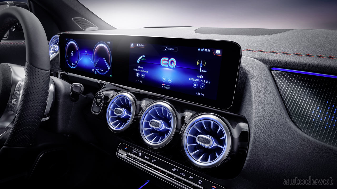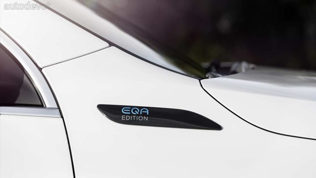 As for safety and driver assistance, the EQA gets Active Lane Keeping Assist and Active Brake Assist as standard. Depending on the market, the optional Driving Assistance Package includes Active Distance Assist Distronic, Active Steer Assist, Active Speed Limit Assist, Evasive Steering Assist, Active Blind Spot Assist, and Pre-Safe Plus.