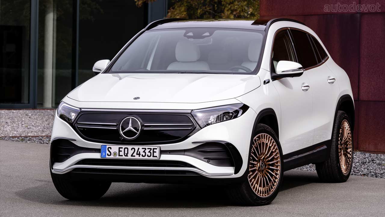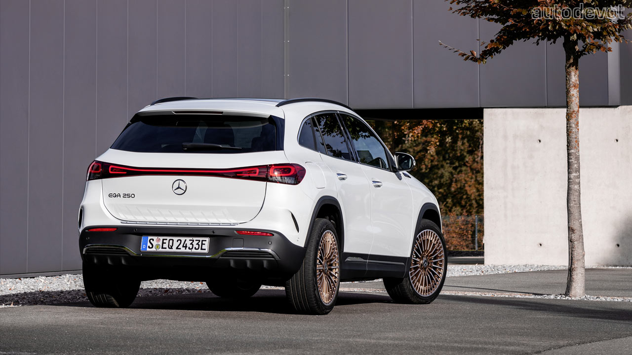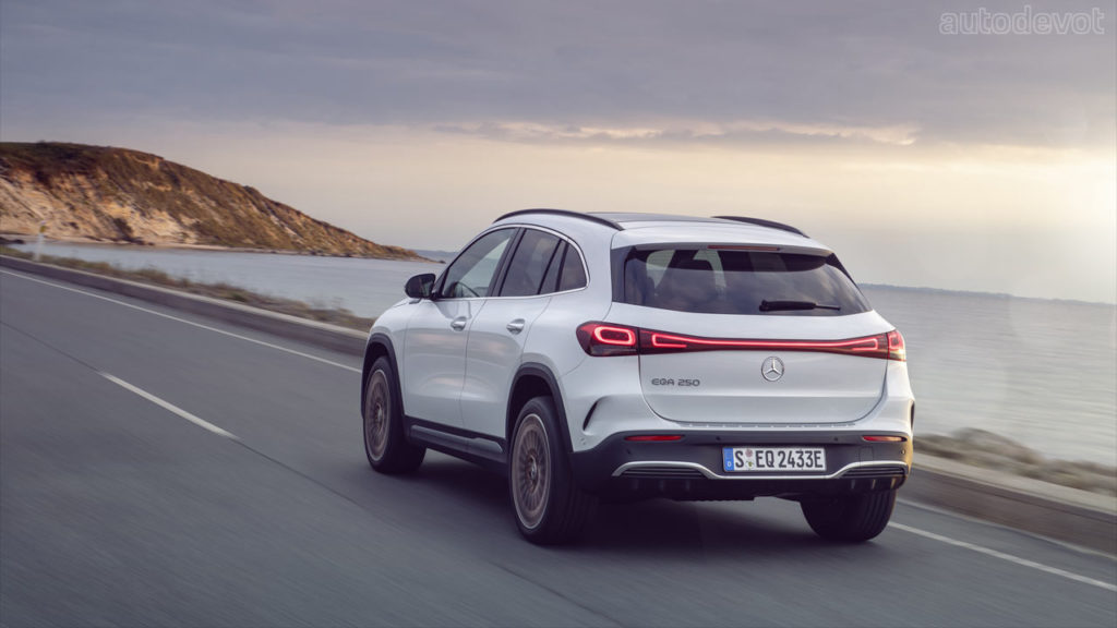 As for suspension, all EQA models get MacPherson struts at the front and four-link (multi-link) at the rear. Steel springs are standard, while the Adaptive Damping System can be found in the options list. Unlike the EQC, the EQA doesn’t get any self-leveling rear air suspension.