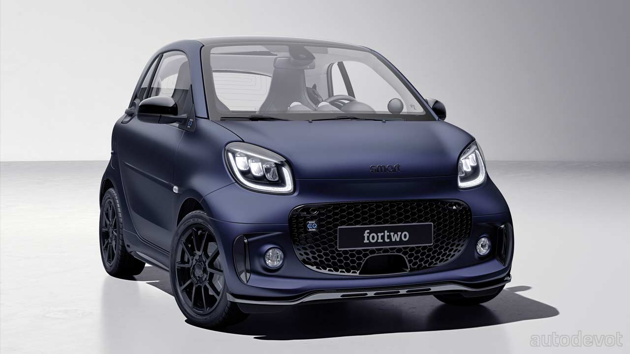 Daimler’s smart marque has revealed the EQ fortwo edition bluedawn, priced at €28,920 in Germany (including 19% VAT). The special edition will also be available in Italy, Spain, UK, Benelux, Portugal, France, Switzerland and Hungary as well.
