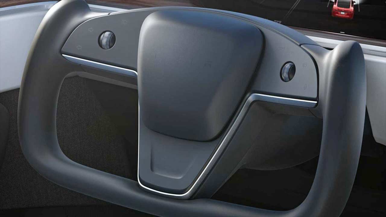 Compared to the exterior changes, the changes in the cabin are significant. There’s a new dashboard that kinda imparts a German flair into the cabin. The air vents are hidden somewhere in that dashboard. The portrait-style central screen has been replaced with a horizontal one, and of course, there’s a yoke-like new steering (wheel?!). It remains to be seen if this is the final production interior, as a yoke like this in a road car doesn’t seem legal or safe. The rear passengers get their own display.