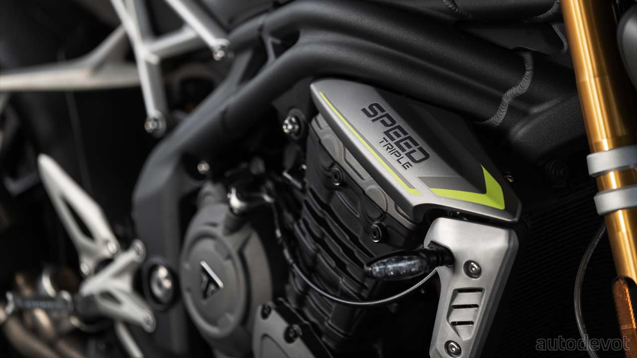 Powering the Speed Triple 1200 RS is a 1,160 cc in-line 3-cylinder liquid-cooled engine that develops 132.4 kW (180 metric hp) at 10,750 rpm and 125 Nm (92 lb-ft) of torque at 9,000 rpm. The engine is paired with a 6-speed gearbox.