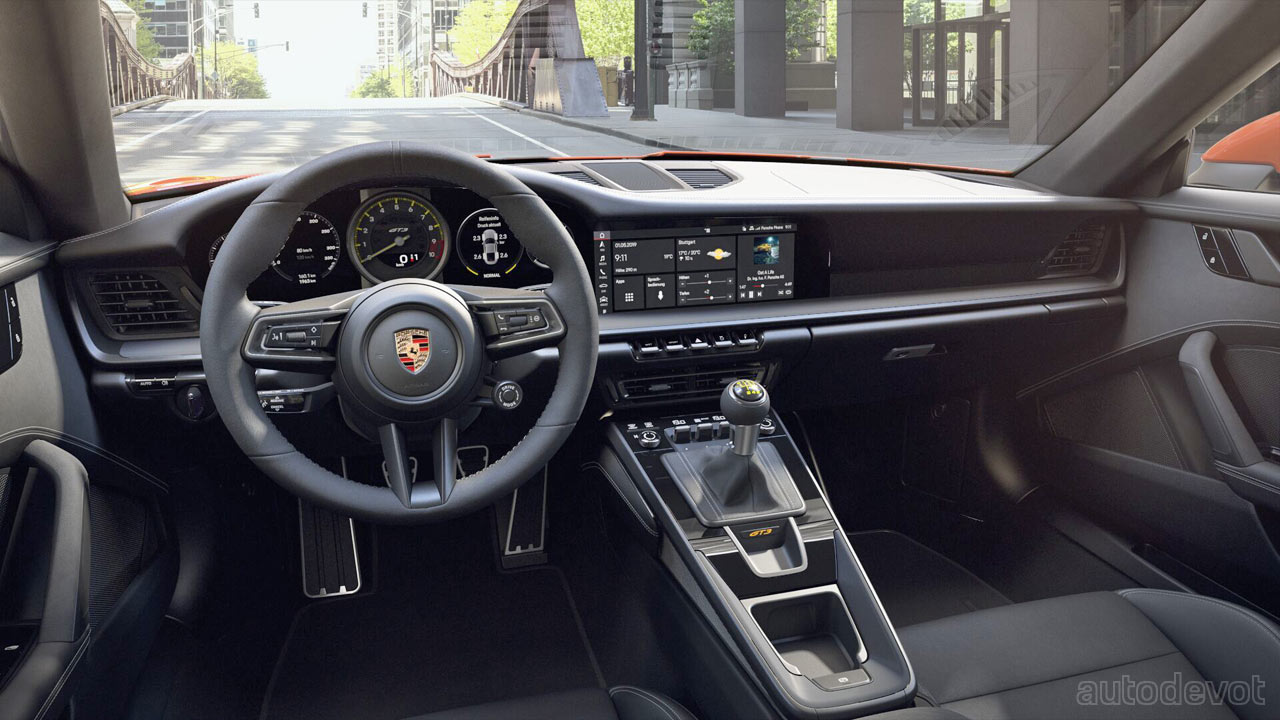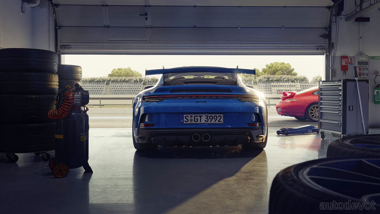 Powering the new 911 GT3 is a 4.0-litre (3,996 cc) naturally-aspirated flat-six motor with 375 kW (510 hp) at 8,400 rpm and 470 Nm (347 lb-ft) of torque at 6,100 rpm — same figures as the GT3 Cup car. Compared to the previous GT3, there’s 10 hp and 10 Nm more. The engine can be paired with either a 6-speed manual gearbox or a 7-speed PDK from the previous model. With manual, a 0-100 km/h (62 mph) sprint is claimed to happen in 3.9 seconds while the PDK is 0.5 seconds quicker, which are same as the previous GT3, and so are the official top speed figures of 320 km/h (198.9 mph) and 318 km/h (197.6 mph), respectively.