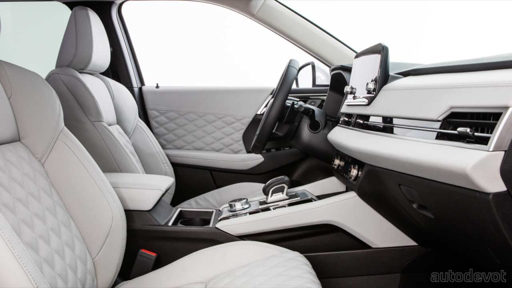 At launch, the new Outlander will be available only with a petrol engine, which is also shared with the Rogue. The 2.5-litre 4-cylinder naturally-aspirated unit develops the same 135 kW (184 metric hp) and 245 Nm (181 lb-ft) of torque. The engine is paired with a CVT that offers 8 simulated shifts. There’ll also be S-AWC models (AWD).