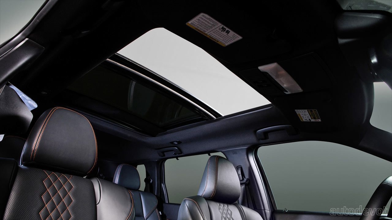 The cabin design too is the production-ized version of the Engelberg concept; the black panel with horizontal lines creates an illusion of a continuous air vent. Features include an 8-way power-adjustable driver seat, semi-aniline leather upholstery, a 12.3-inch digital driver display (optional), a 10.8-inch full-color Head-Up Display, 9-inch central display, Android Auto & wireless Apple CarPlay connectivity, wireless smartphone charging (optional), USB-A and USB-C charging ports, 3-zone climate control, and a 10-speaker Bose audio system.