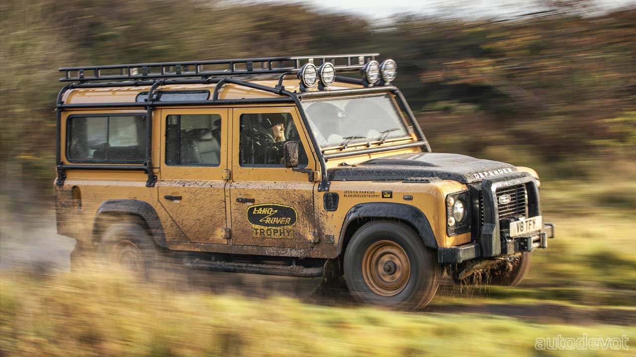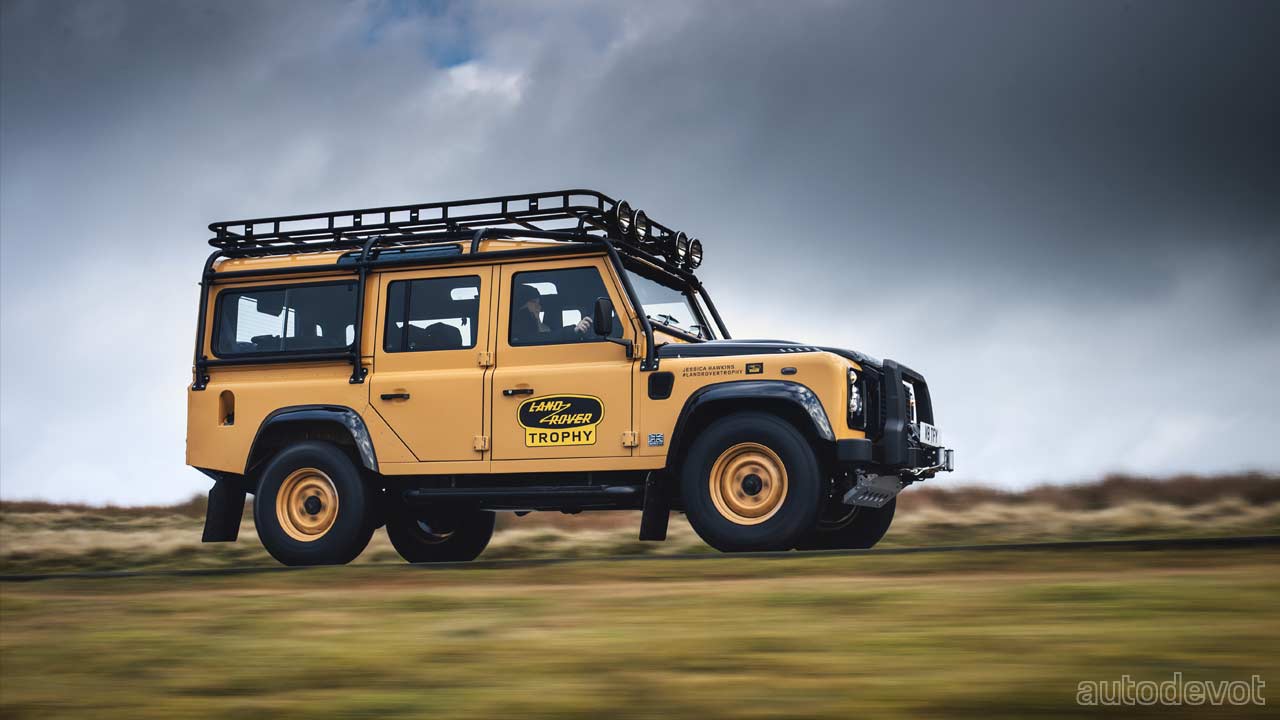 Each of the 25 units will be finished in an exclusive Eastnor Yellow paint with matching 16-inch steel wheels. Adding contrasting touches are Narvik Black-painted wheel arches, bonnet and the rear door. The purpose-built off-roaders also receive LED headlights, a Heritage front grille, Land Rover Trophy badging and event participation graphics personalized to each customer.