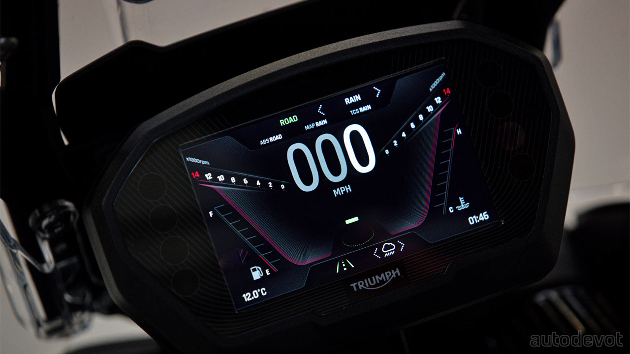 Features include all-LED lighting; adjustable windscreen; 5-inch TFT instrument display; Road and Rain riding modes; Marzocchi upside-down fork with preload adjustment; Slip & Assist clutch; Brembo Stylema calipers gripping 320 mm discs at the front; ABS and Switchable Traction Control.