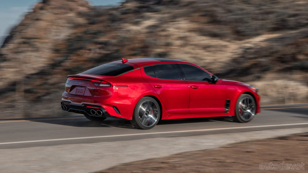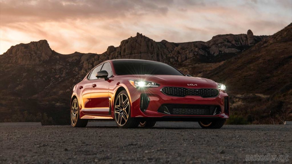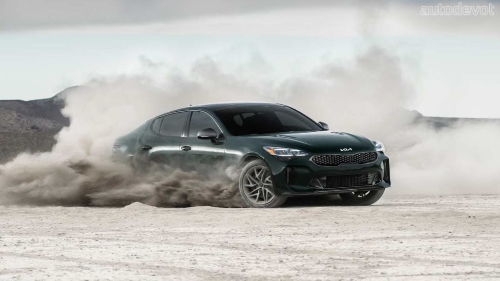 Kia has revealed the 2022 Stinger lineup for the North American market, scheduled to go on sale this spring with prices starting at US$ 36,090. The 2022 model builds on the 2021 facelift with minor styling tweaks, added features and revised powertrains. The lineup includes a special Scorpion Edition that’ll follow the regular models in late spring.