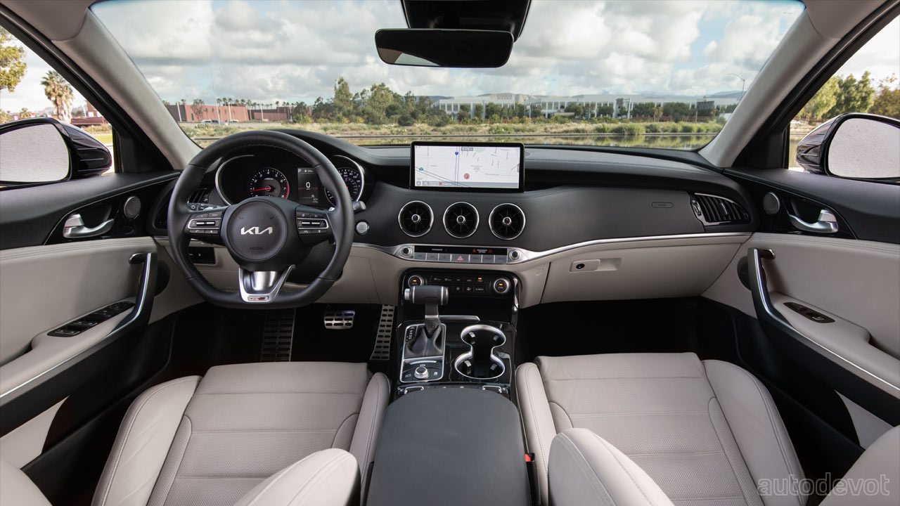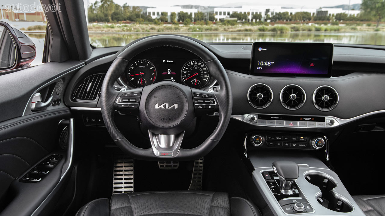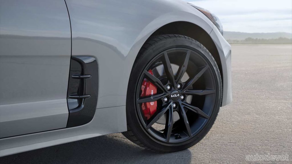 Overall, the Stinger lineup gets the standard LED headlights with a new running light signature or optional “Stinger-signature” headlights, standard LED taillights, new 18- and 19-inch wheel designs with technical geometric shapes, and quad exhaust tips. Besides the new logo and wheel designs, the 2022 model looks pretty similar to the 2021 Stinger GT. In the U.S. market, the 2022 Stinger will be available in three trims –