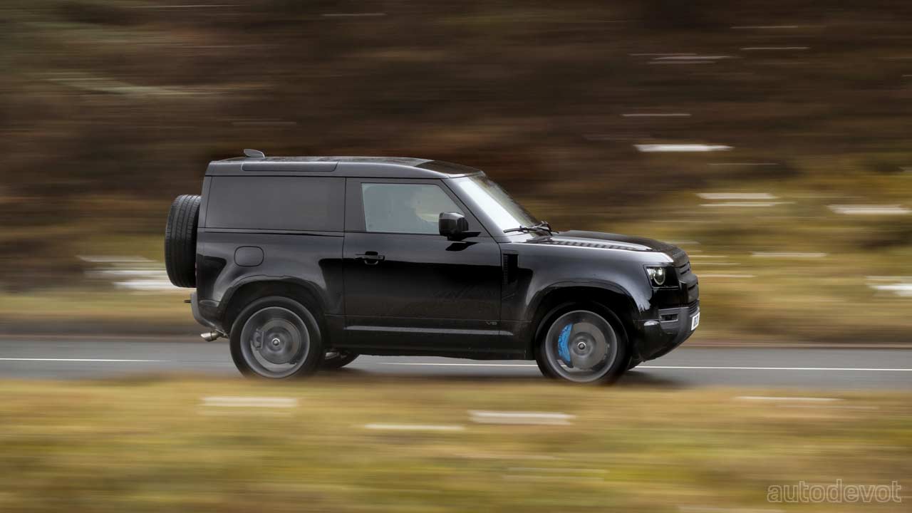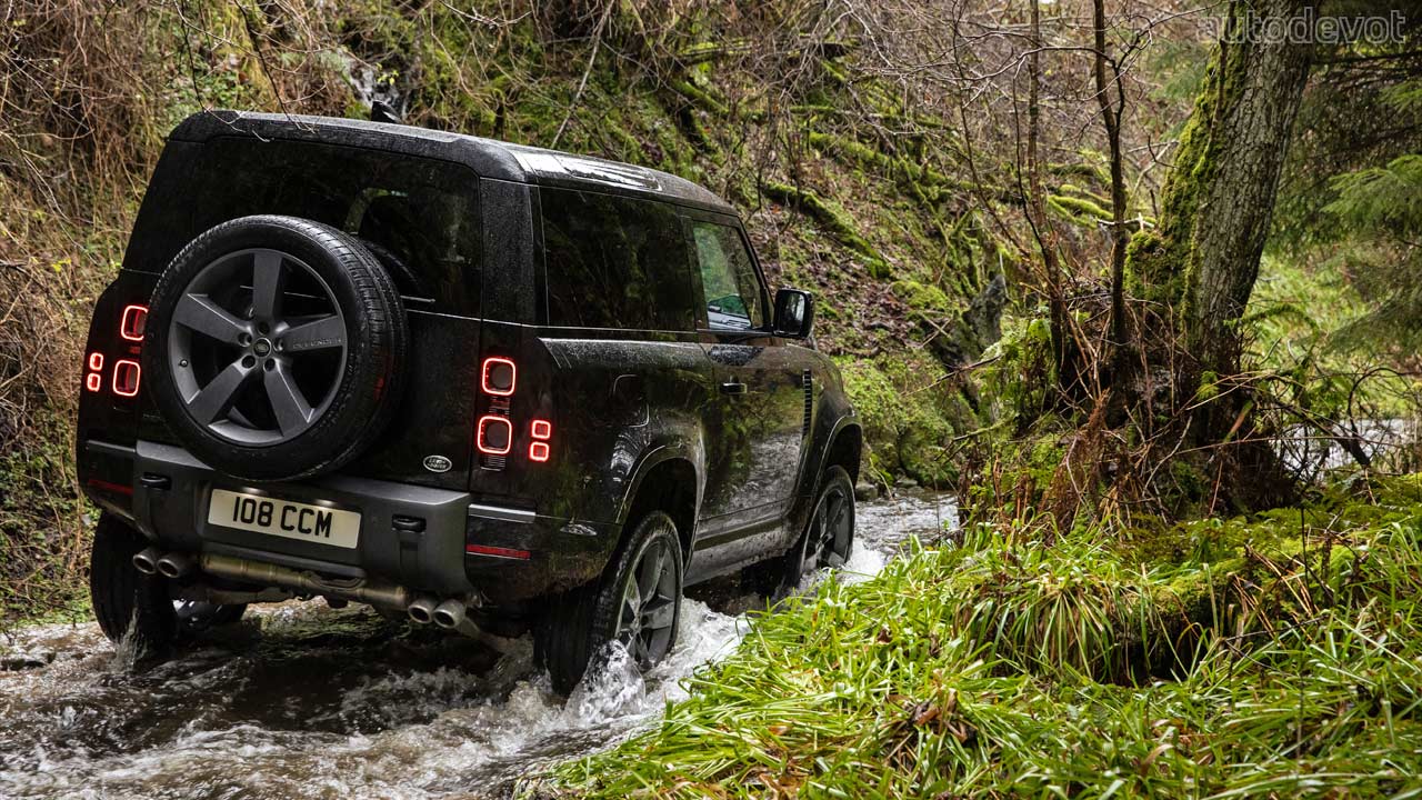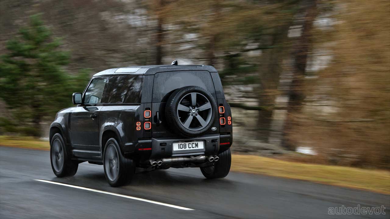 Power comes from a 5.0-litre V8 supercharged petrol engine that pumps out 386 kW (525 metric hp) and 625 Nm (461 lb-ft) of torque. An 8-speed automatic gearbox drives all four wheels. The Defender V8 90 is claimed to accelerate from 0-100 km/h (62 mph) in 5.2 seconds, while the 110 model takes 0.2 seconds more, should such things interest you. The top speed of the V8 90 is claimed to be 240 km/h (149 mph).