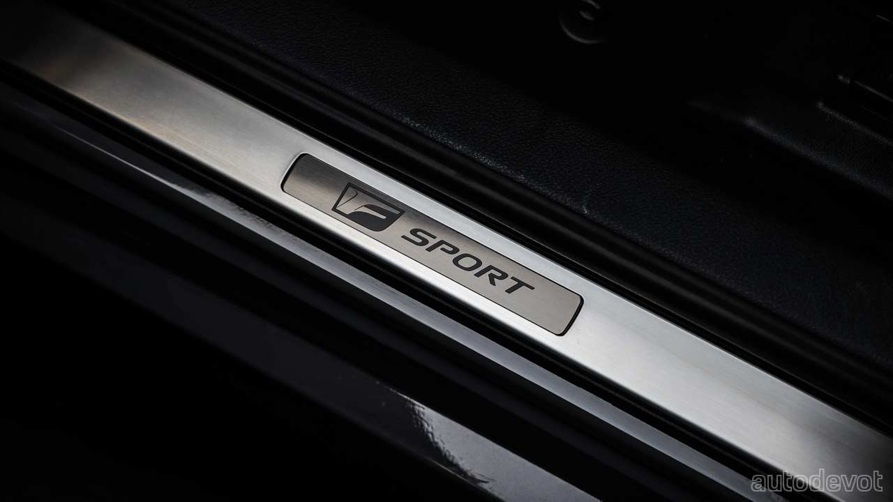 The cabin features a unique Black & Grey Ultrasuede trimmed front and rear seats, door accents, and center console. In addition, the heated leather-wrapped steering wheel receives a silver ash wood garnish with a black F Sport Performance badging. Also, notice a special Launch Edition plaque on the centre console.