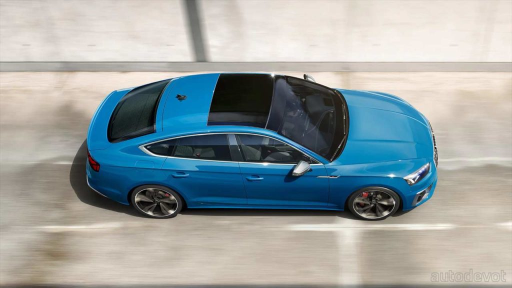 The S5 Sportback is powered by a 3.0-litre (2,994 cc) turbocharged V6 petrol engine with 260 kW (353 metric hp) and 500 Nm (369 lb-ft) of torque on offer. An 8-speed automatic gearbox drives all four wheels via quattro AWD system. The sporty four-door coupe claims a 0-100 km/h (62 mph) time of 4.8 seconds, while the top speed is limited to 250 km/h (155 mph).