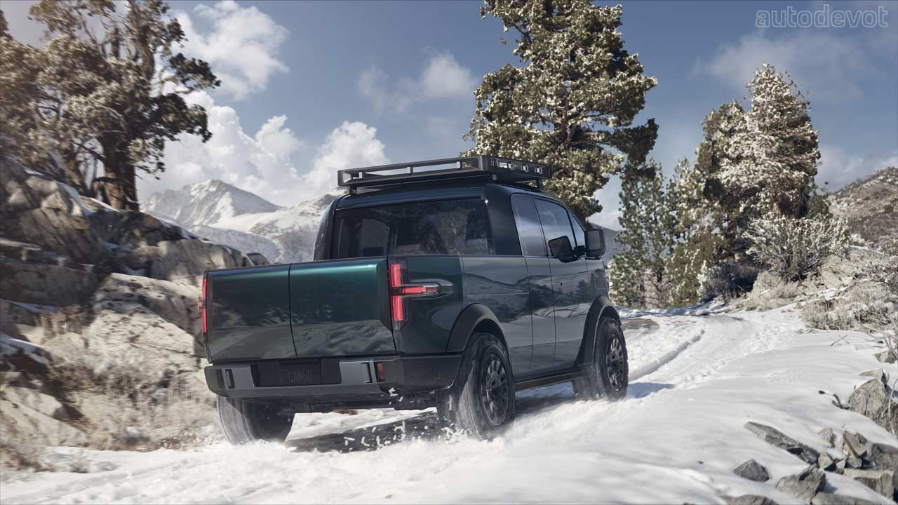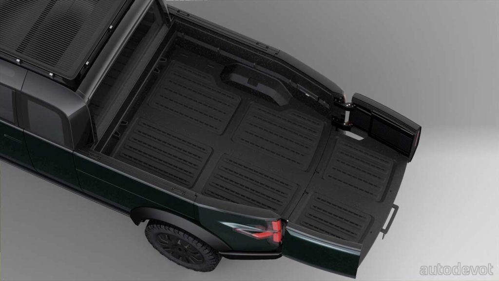 The design too follows the same, minimalistic philosophy as the minivan to prioritize the cabin and bed space. In fact, the pickup truck simply looks like a jacked-up version of the minivan with the rear half of its body chopped off, and that’s probably the idea to showcase the versatility of the platform.