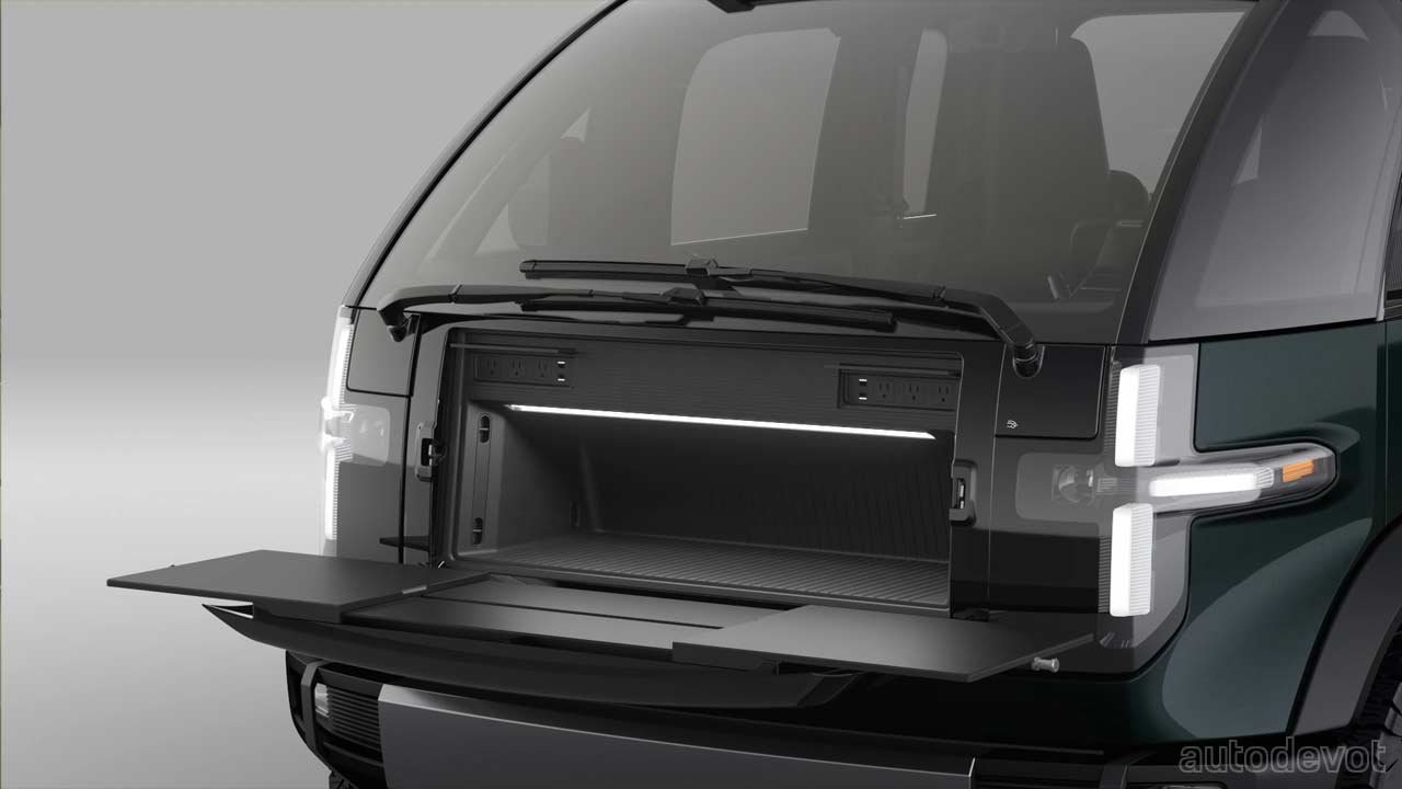 Being an electric vehicle on a skateboard platform, the Canoo pickup truck offers acres of space inside, not only for two people but also to store some more of their stuff if they run out of external storage spaces. Canoo says that two additional seats can be added at the rear if necessary.