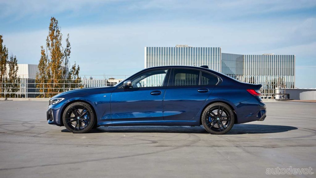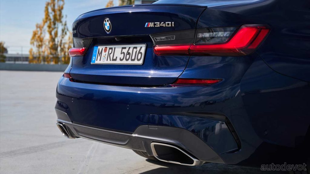 The M340i shouldn’t be confused with the new M3 that debuted in September 2020. While it is significantly powerful compared to the regular 3 Series petrol, it’s not the full-blown M car with 480 horses. With that out of the way, let’s take a look at the M340i’s powertrain. Speaking of which, it is powered by a 3.0-litre (2,998 cc) straight-six turbocharged petrol engine that develops 285 kW (387 metric hp) at 5,800 rpm and 500 Nm (369 lb-ft) of torque between 1,850-5,000 rpm. An 8-speed automatic gearbox drives all four wheels via xDrive AWD system. BMW claims a 0-100 km/h (62 mph) sprint time of 4.4 seconds.