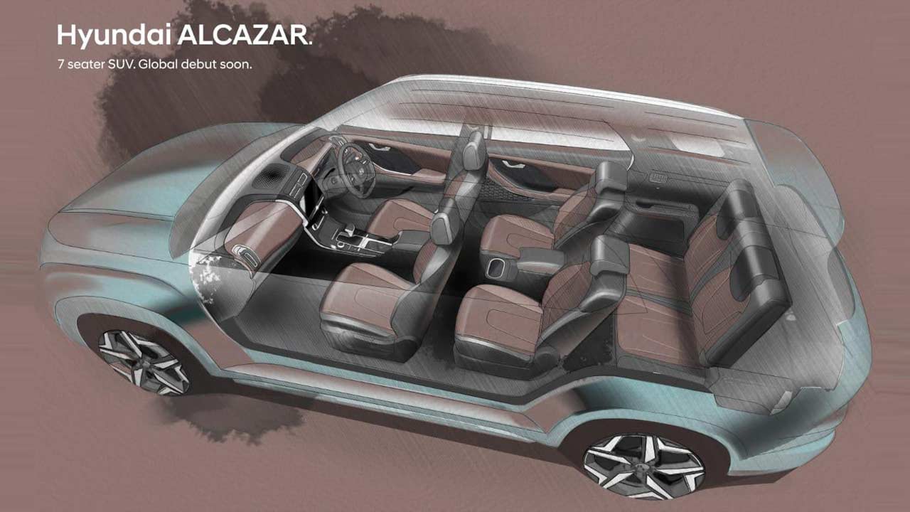 Hyundai wants to capitalize on the growing 3-row SUV segment in India with the upcoming ‘Alcazar’, named after Spanish castles. The SUV is currently undergoing testing and a media preview is expected on April 6, 2021. In the meantime, Hyundai has revealed a couple of sketches.